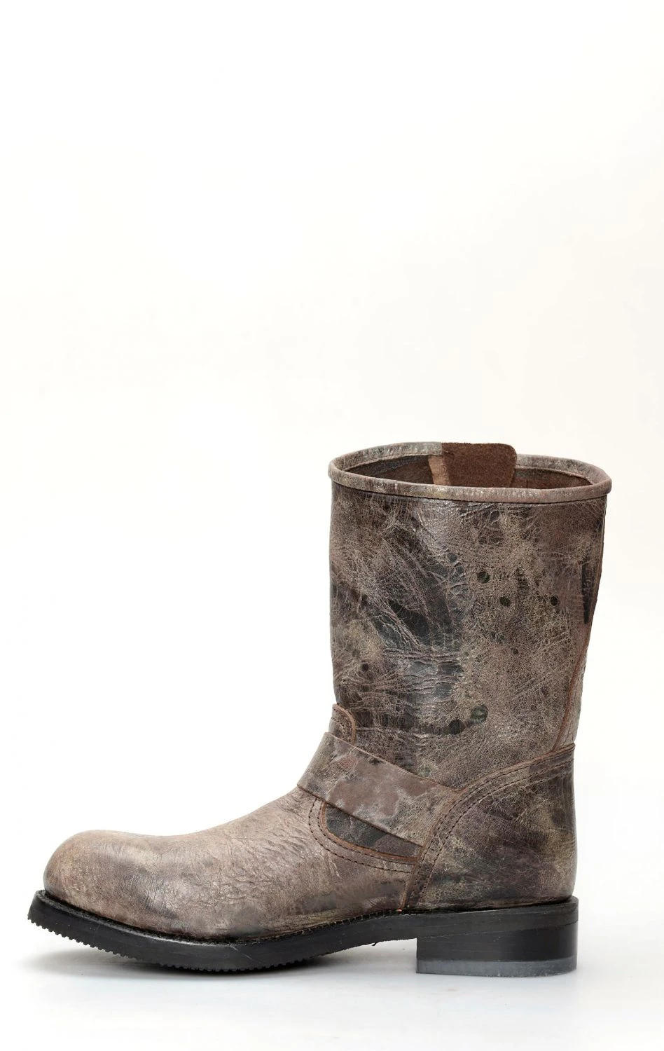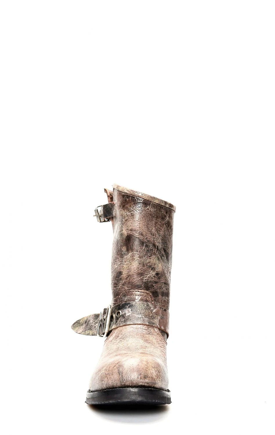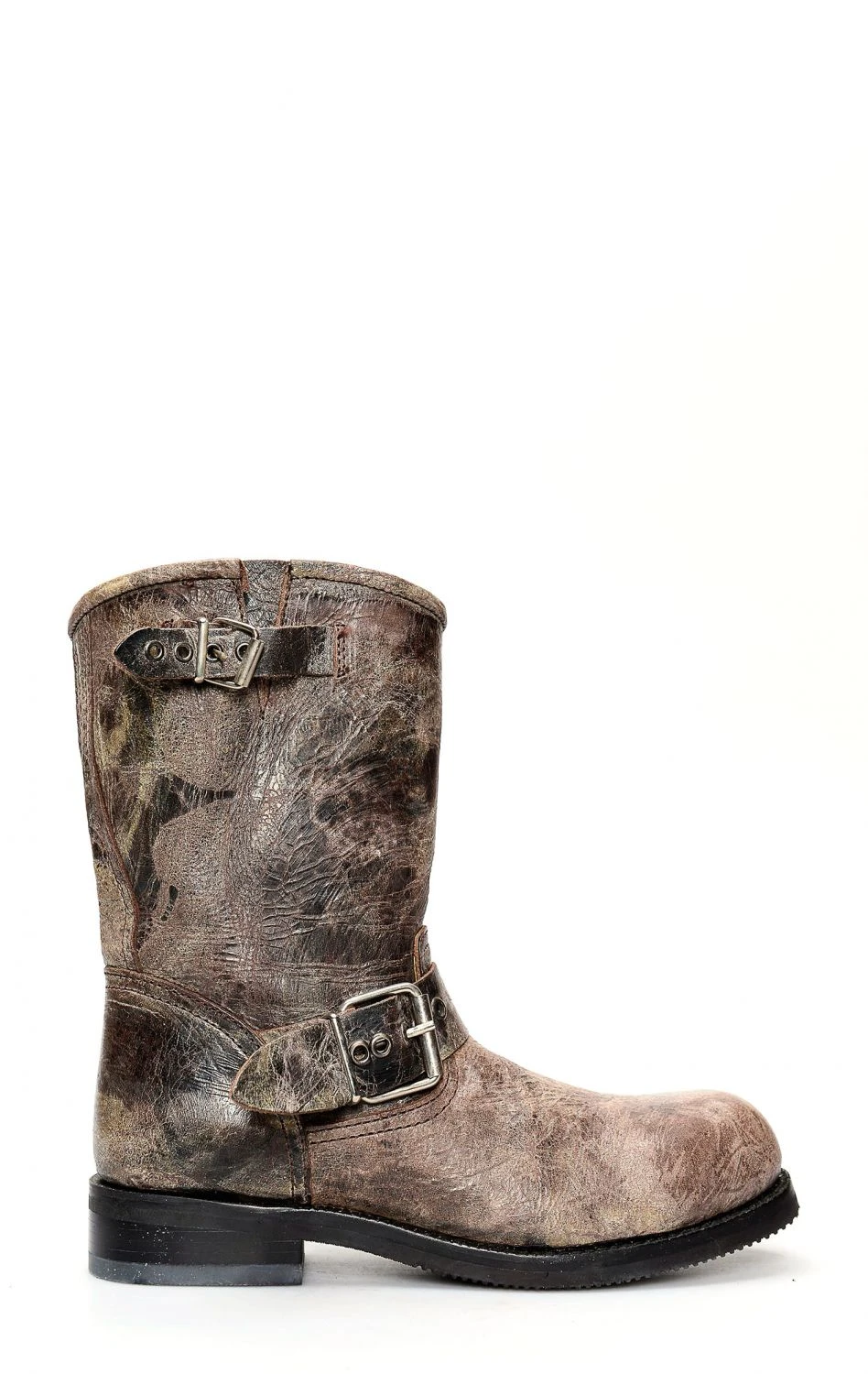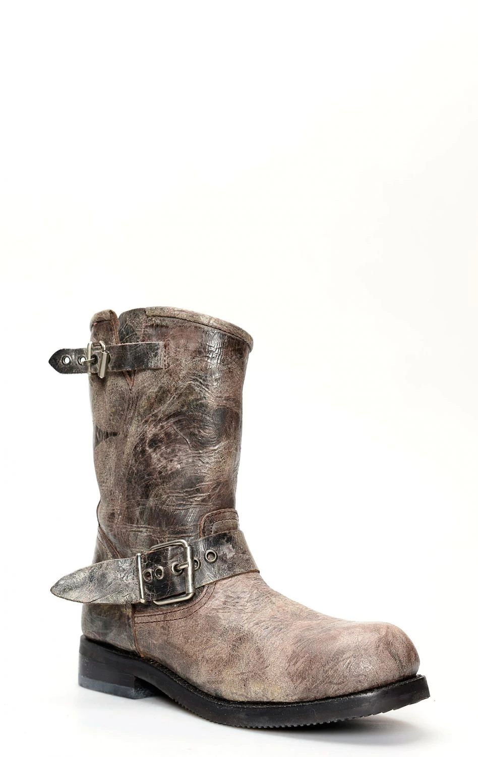 Stivali Jalisco in perfetto stile biker in pelle invecchiata marrone. Punta rotonda e suola in gomma. Perfetto per la moto ed il tempo libero.
