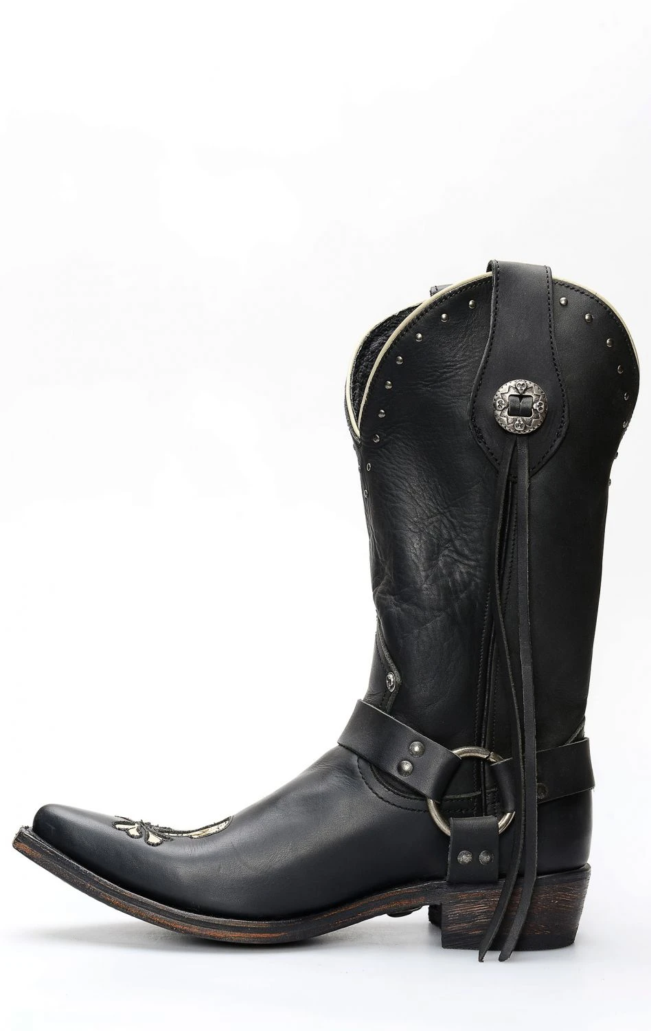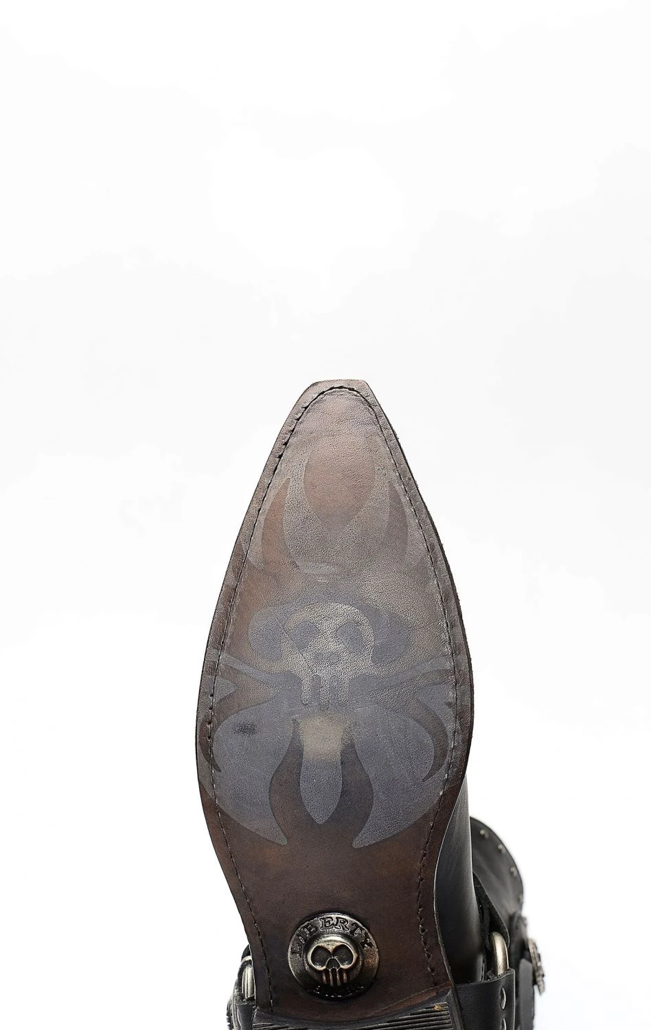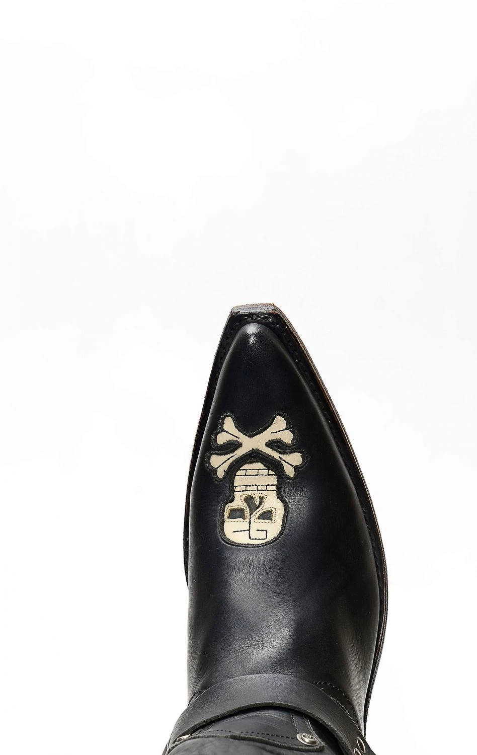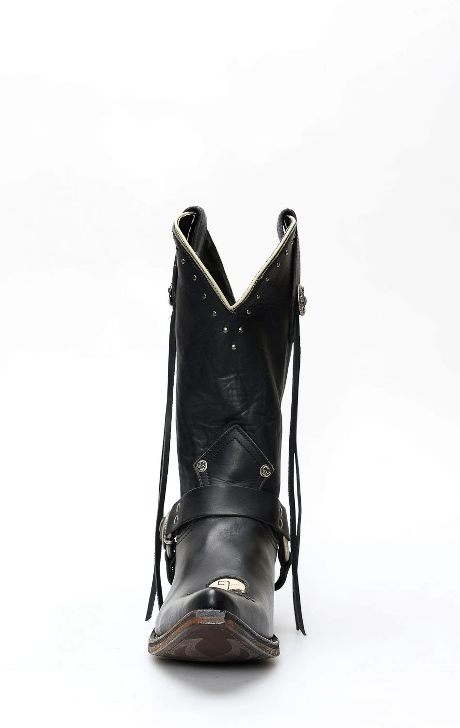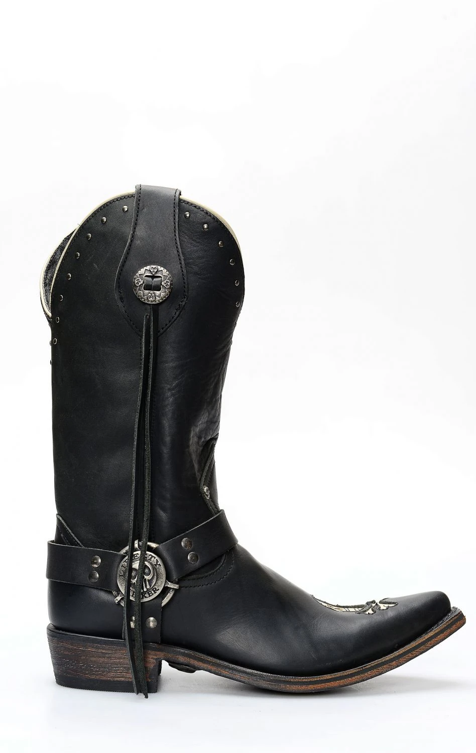 Stivali Liberty Black in pelle nero con spettacolare inserto a forma di teschio. Texano dal tocco biker. Stivale senza compromessi.