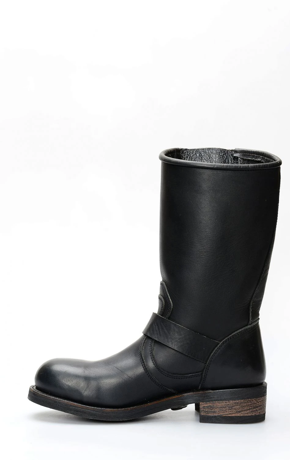 Stivale confezionato in pelle genuina di vitello di colore nero opaco, completamente rifinito all’interno in fior di pelle e con suola in gomma.