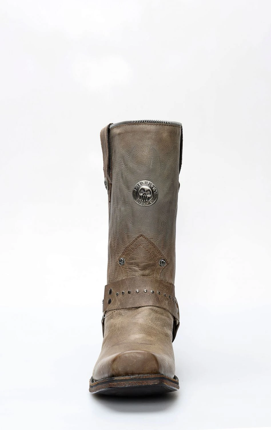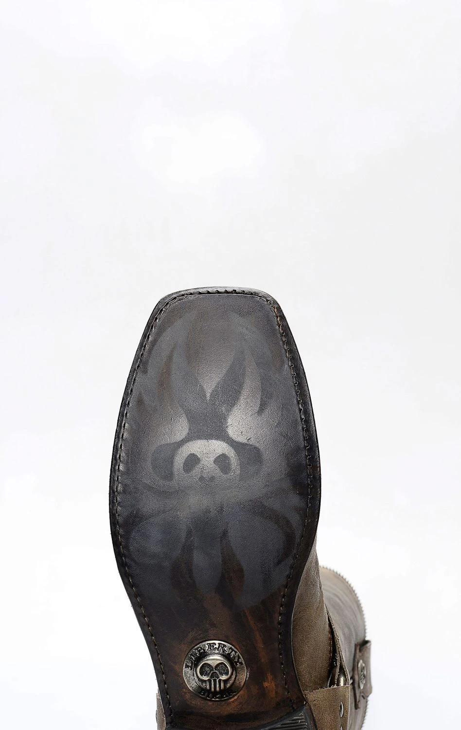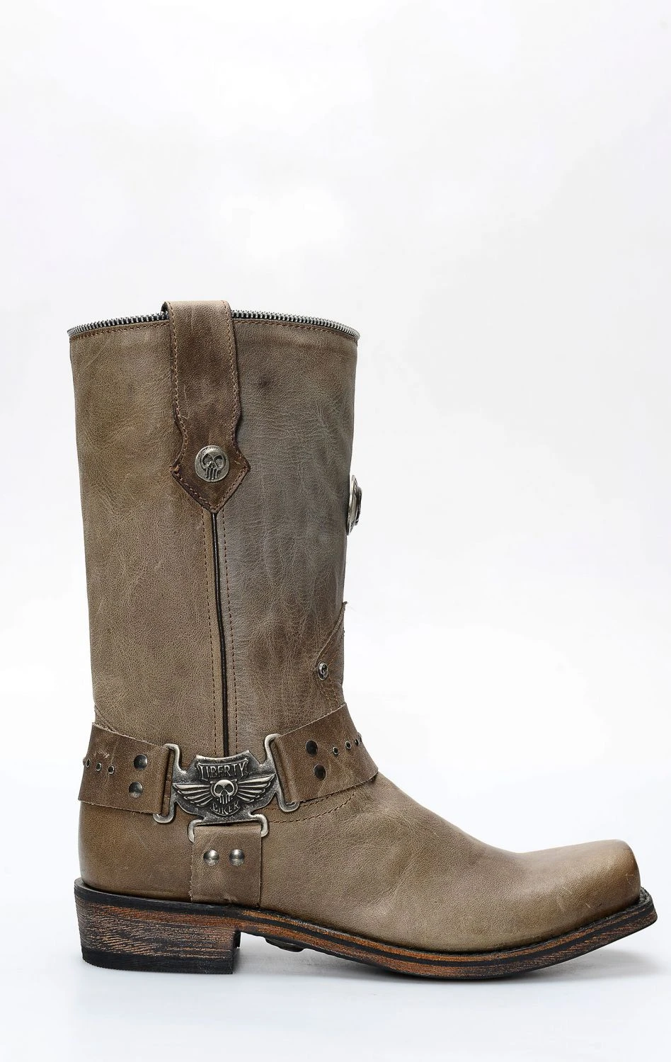 Stivali Liberty Black in stile biker in pelle marrone invecchiata. Punta squadrata e cinturino con bellissima fibbia laterale.