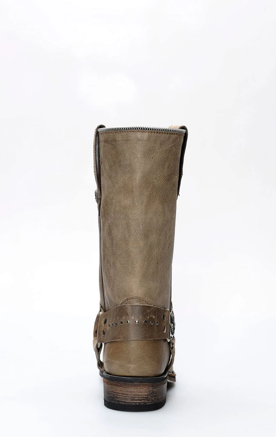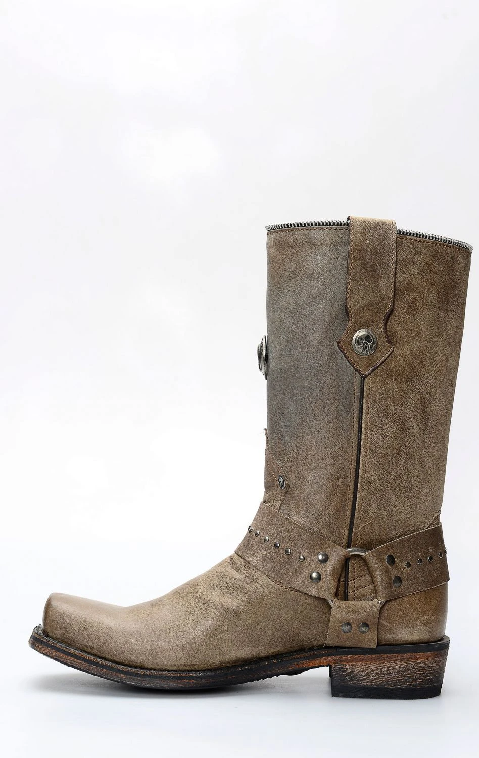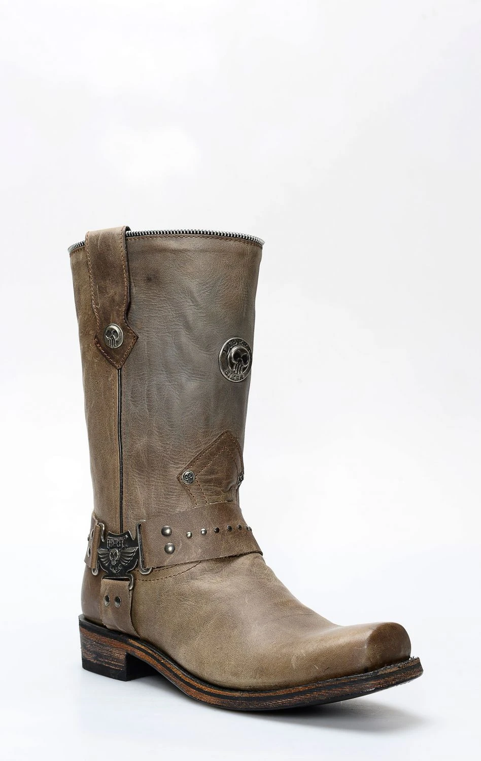 Stivali Liberty Black in stile biker in pelle marrone invecchiata. Punta squadrata e cinturino con bellissima fibbia laterale.