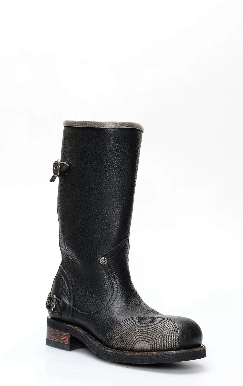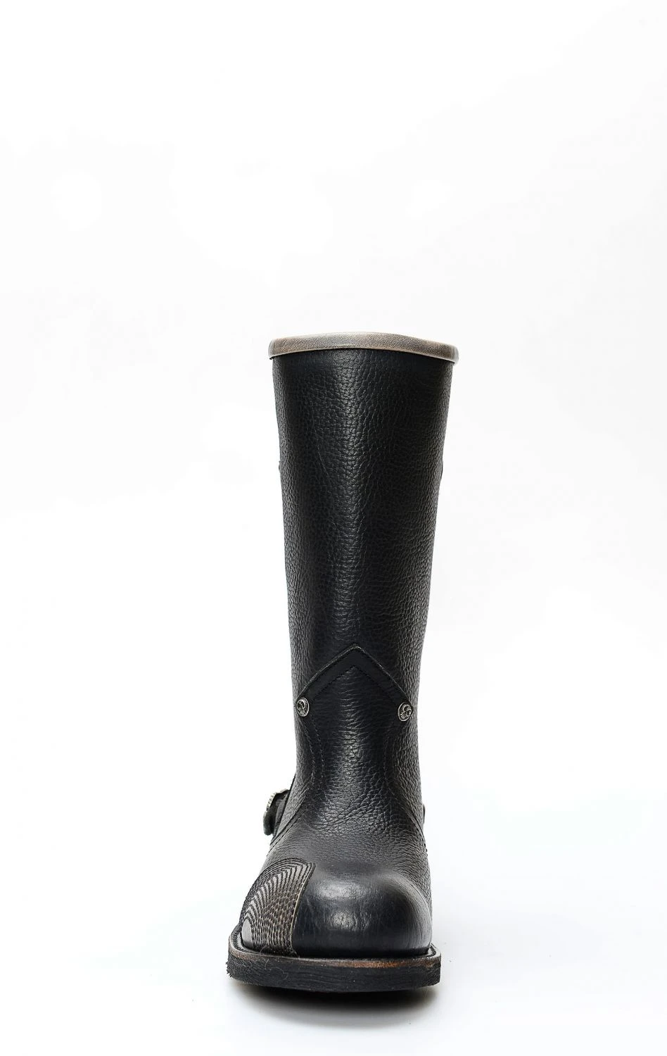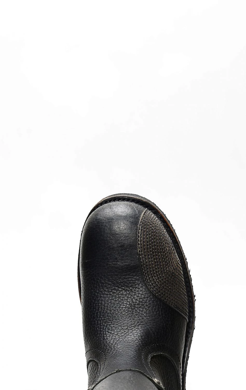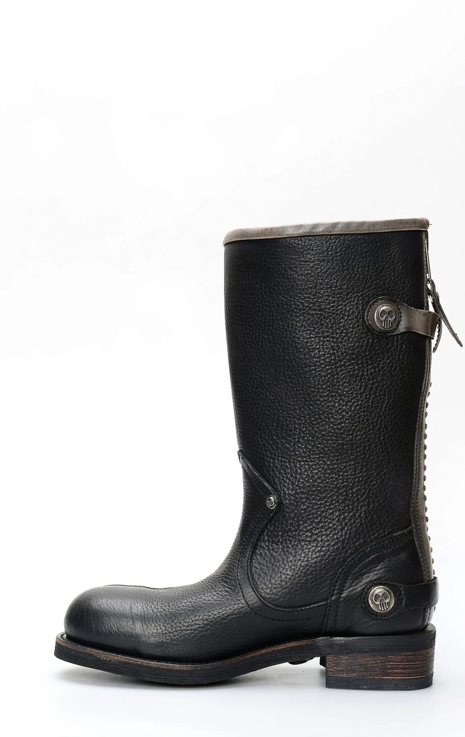 Stivale confezionato in pelle genuina di vitello di colore nero opaco, completamente rifinito all’interno in fior di pelle e con suola in gomma.