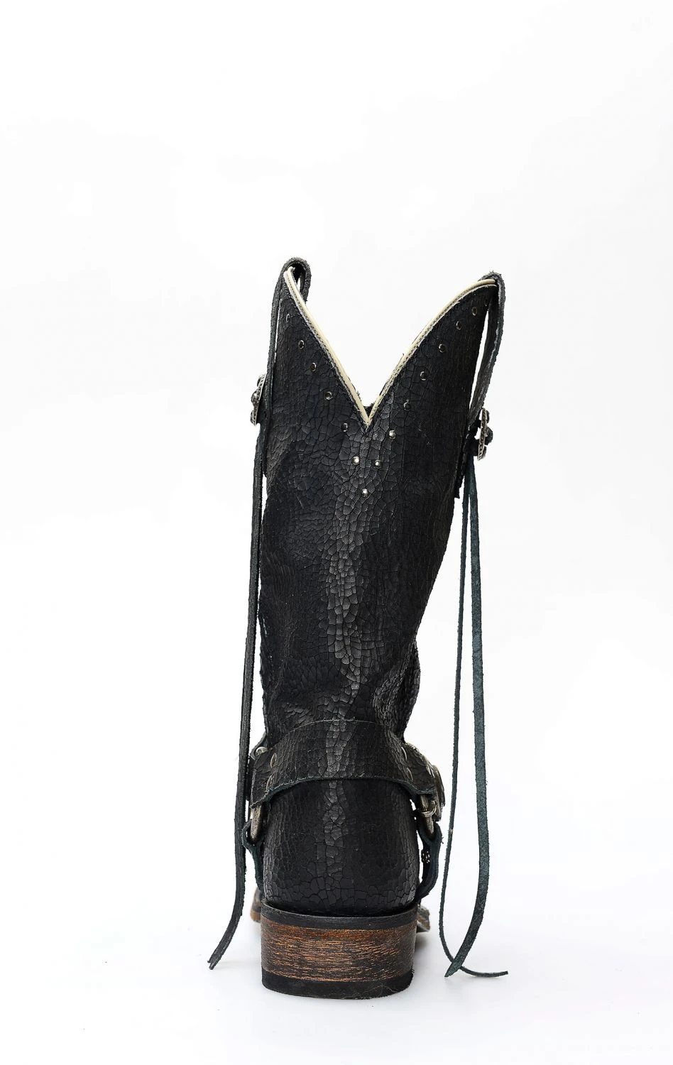 Stivale confezionato in pelle genuina di vitello di colore nero , completamente rifinito all’interno in fior di pelle e con suola in cuoio.