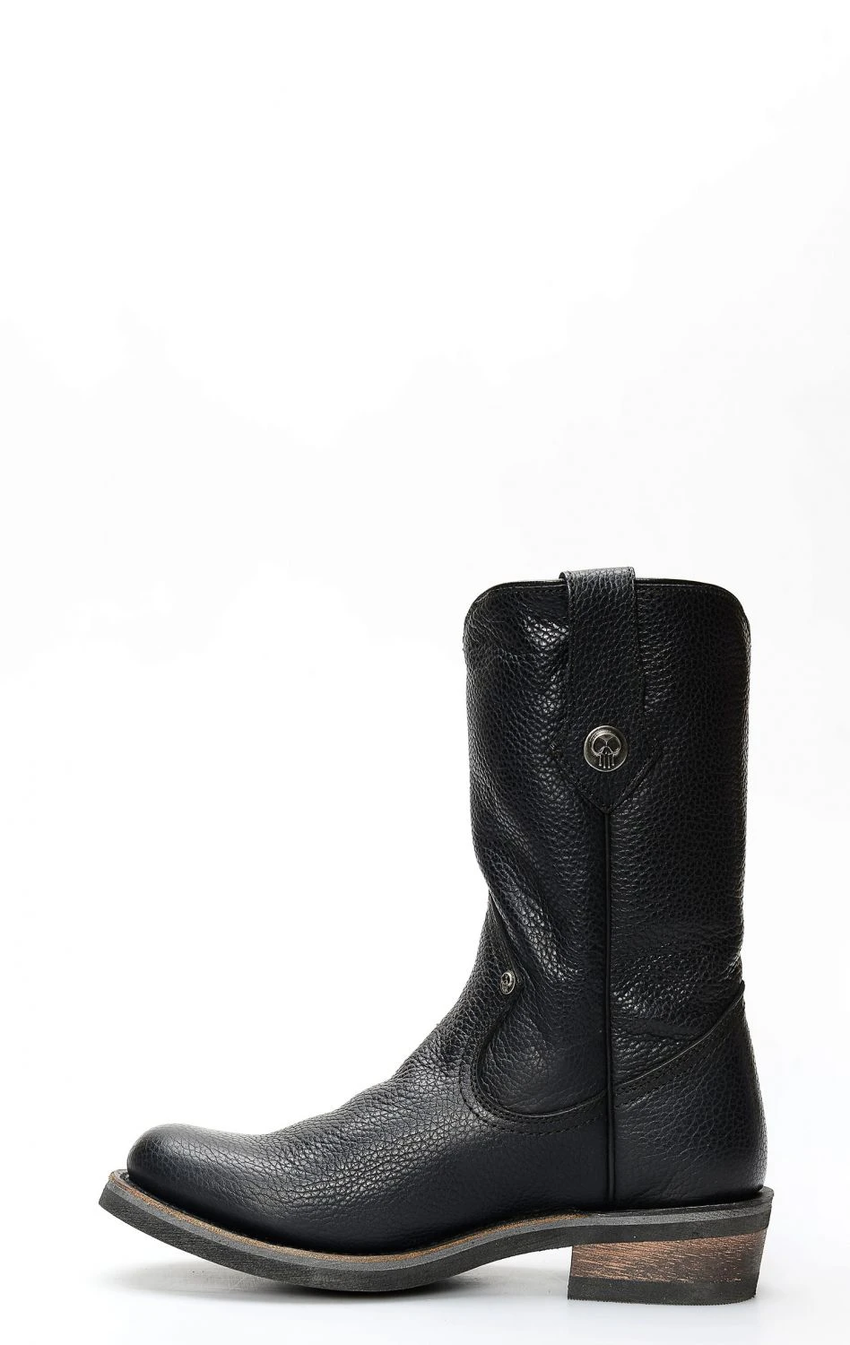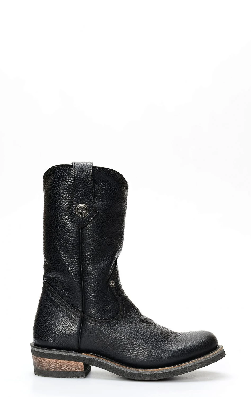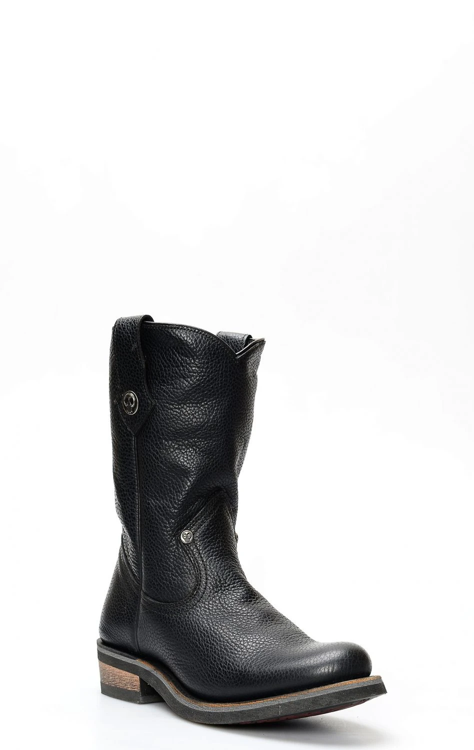 Stivale confezionato in pelle genuina di vitello di colore nero, completamente rifinito all’interno in fior di pelle e con suola in gomma.