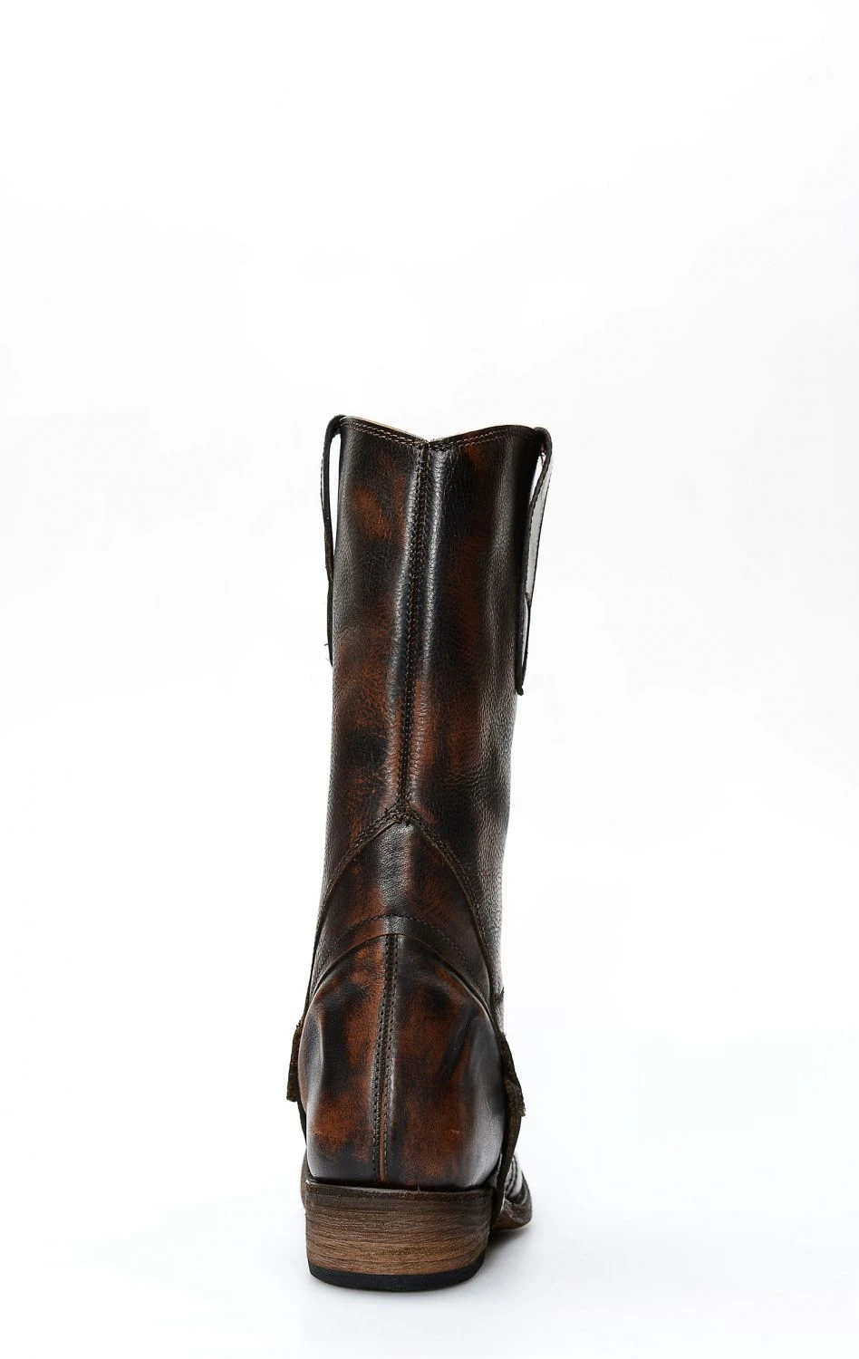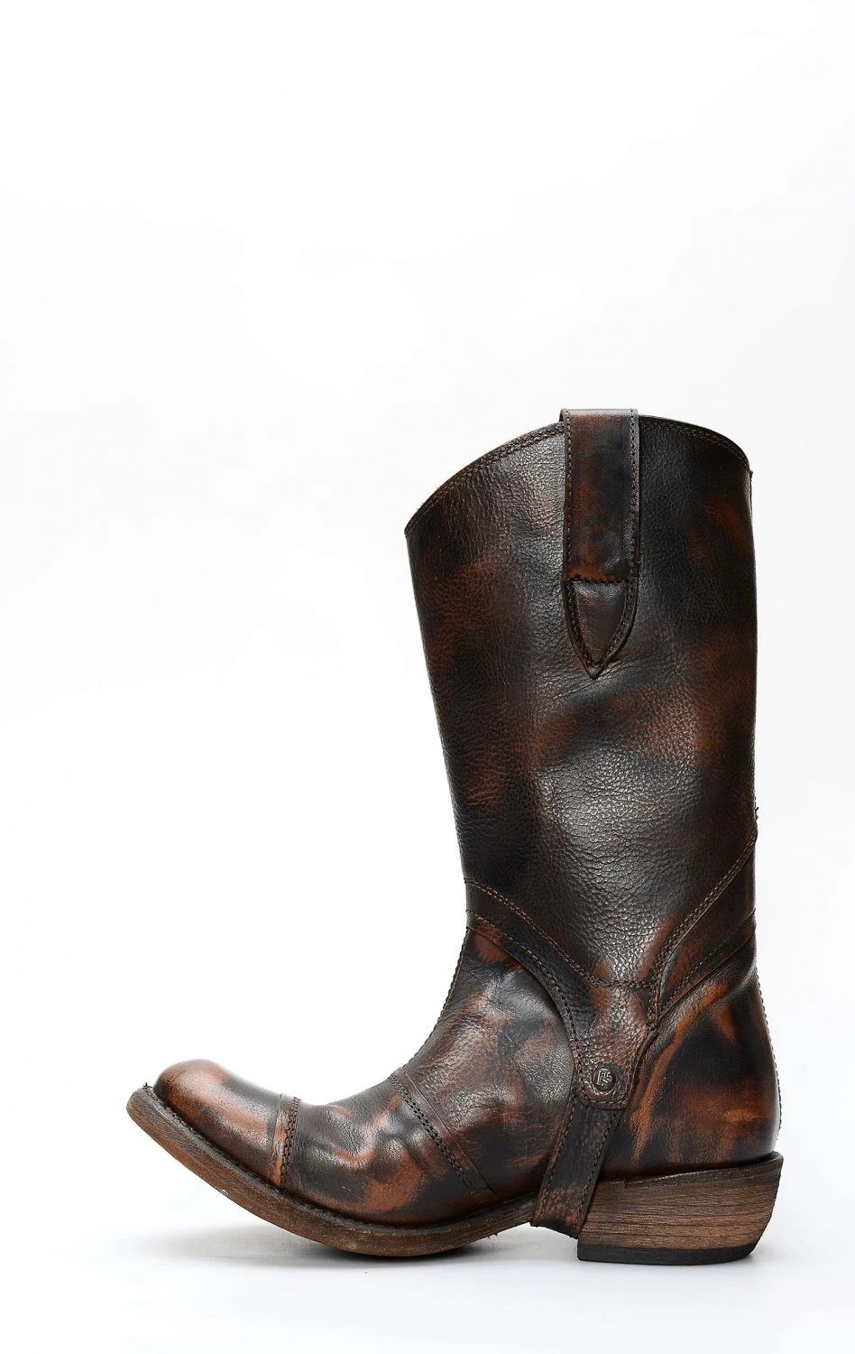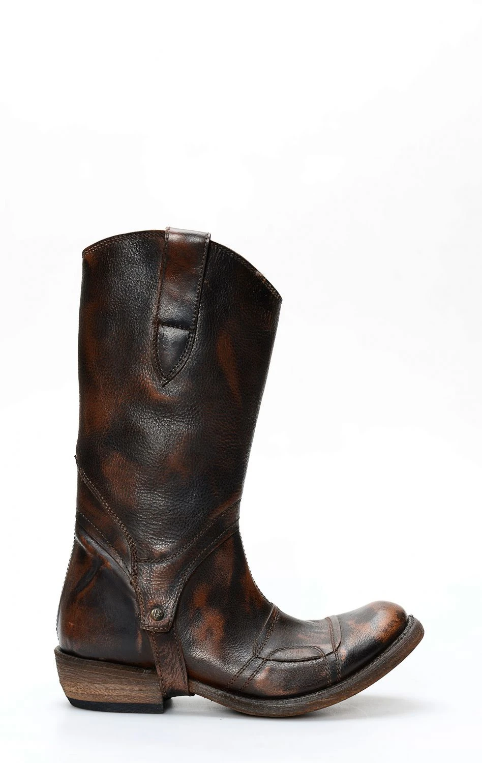 Stivale confezionato in pelle genuina di vitello di colore marrone chiaro spazzolato, completamente rifinito all’interno in fior di pelle e con suola in cuoio.