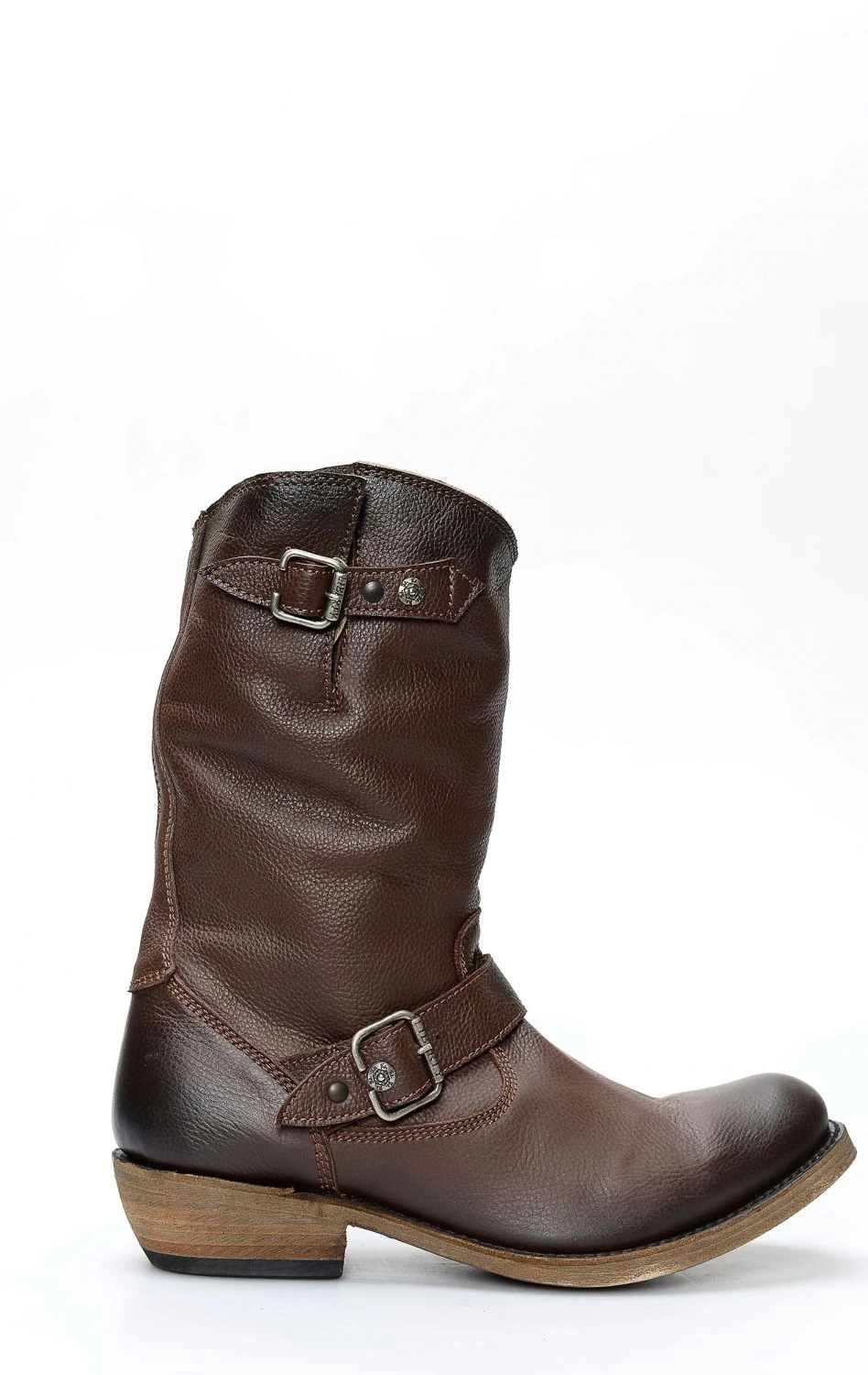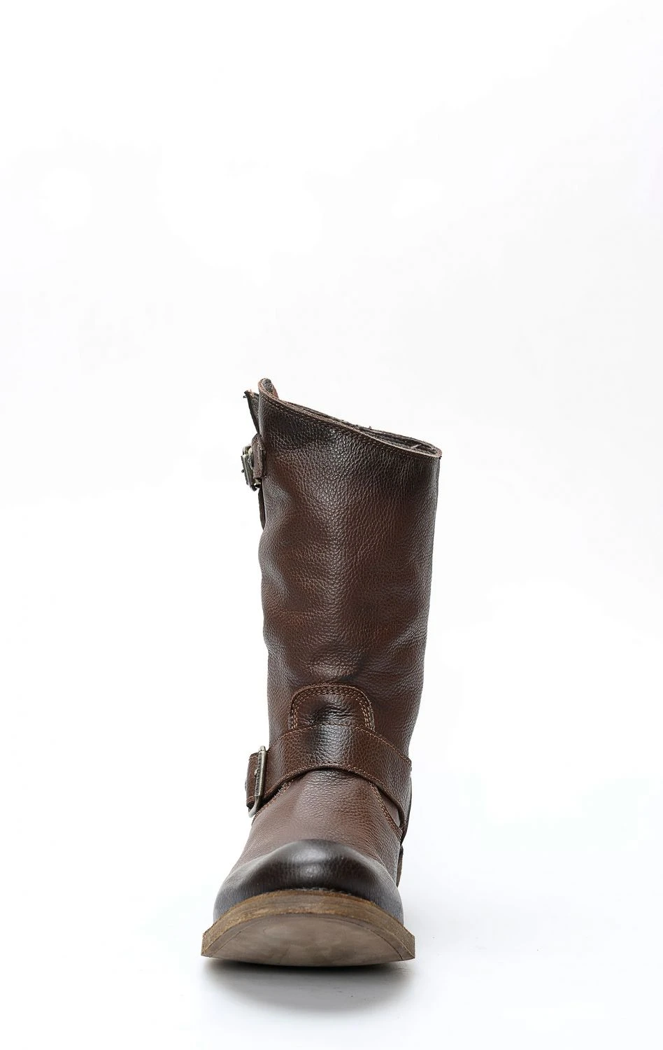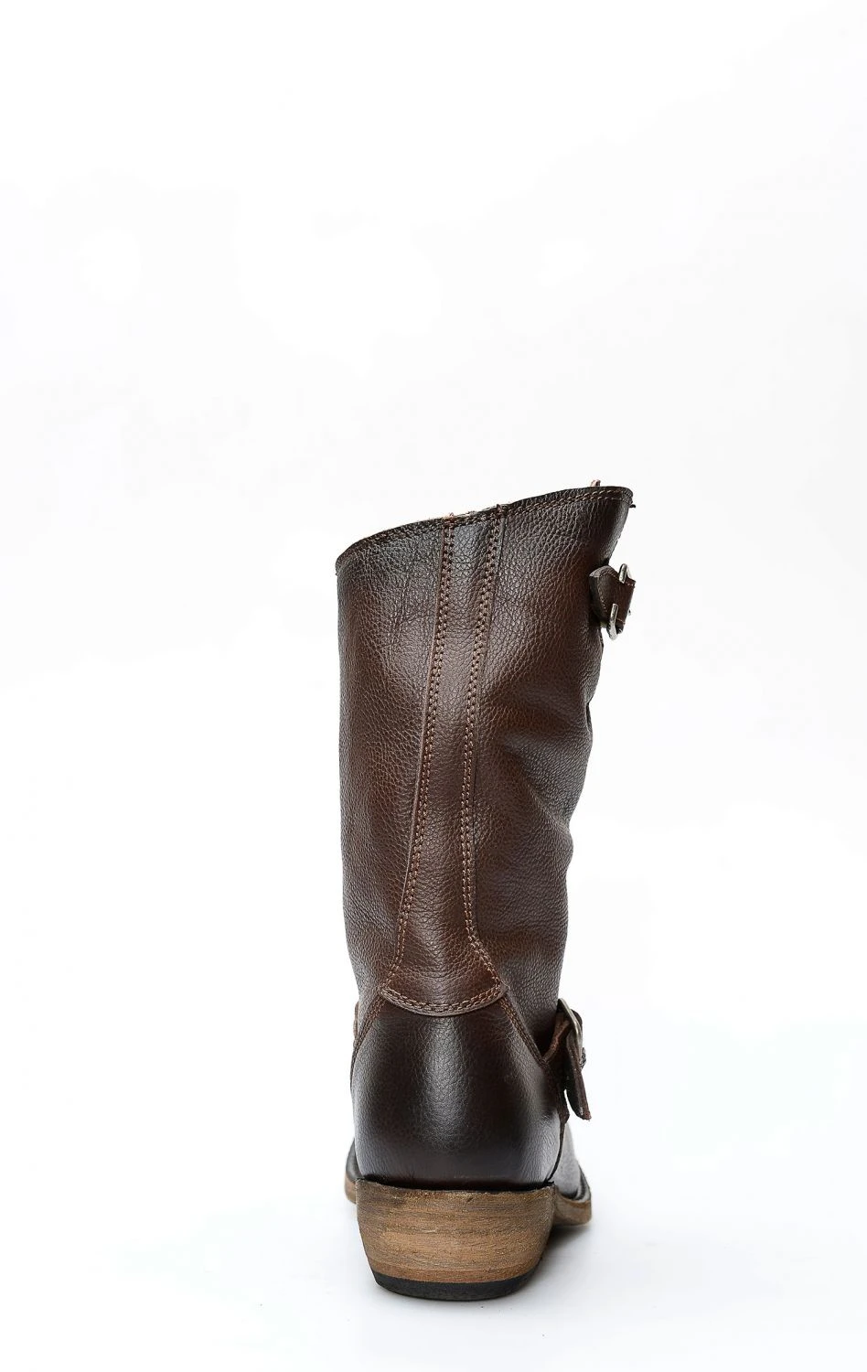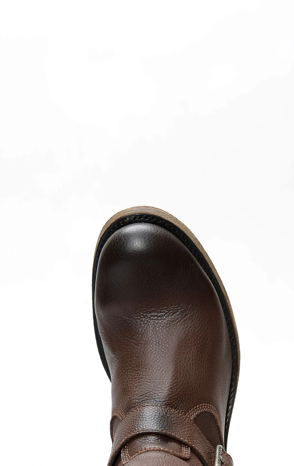 Stivale confezionato in pelle genuina di vitello di colore marrone, completamente rifinito all’interno in fior di pelle e con suola in cuoio.