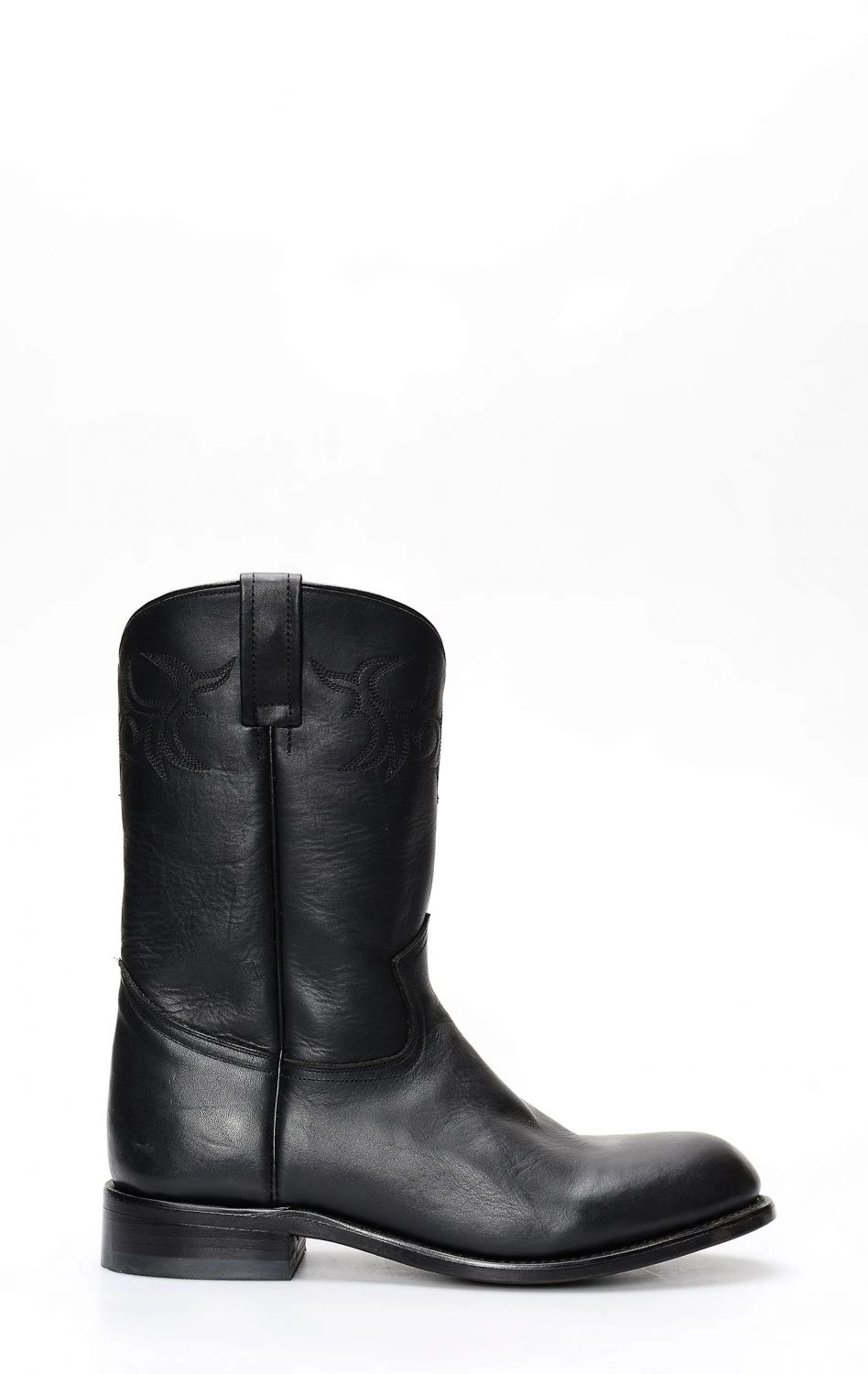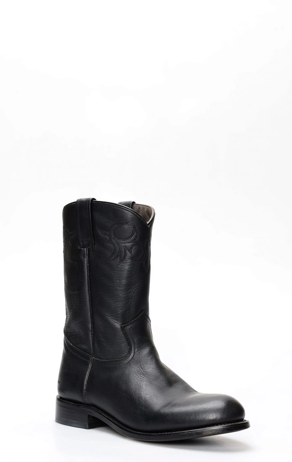 Stivali Caborca in pelle nera con punta rotonda. Semplice e pulito senza ricami.