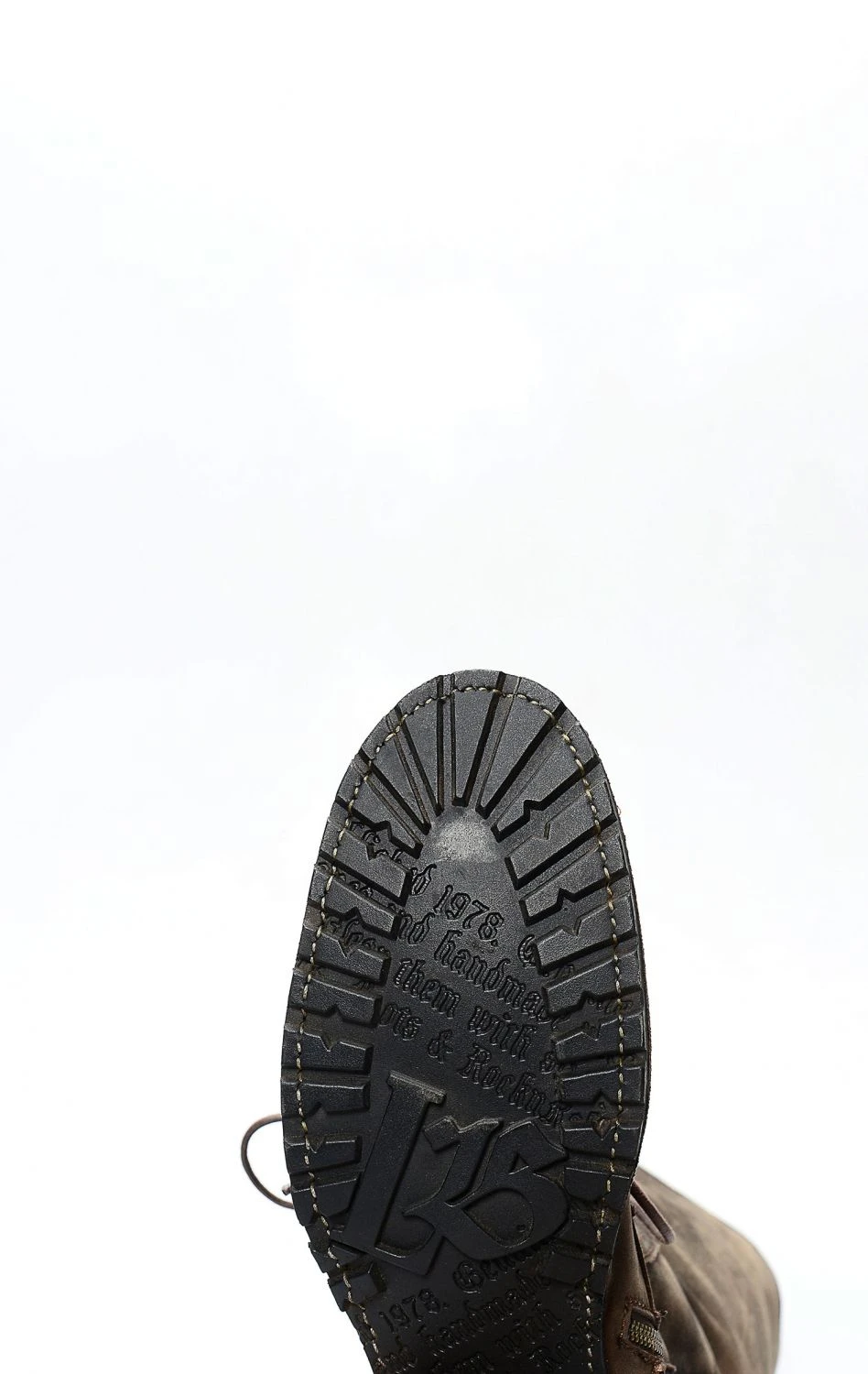 Stivale confezionato in pelle genuina di vitello di colore testa di moro, completamente rifinito all’interno in fior di pelle e con suola in gomma.