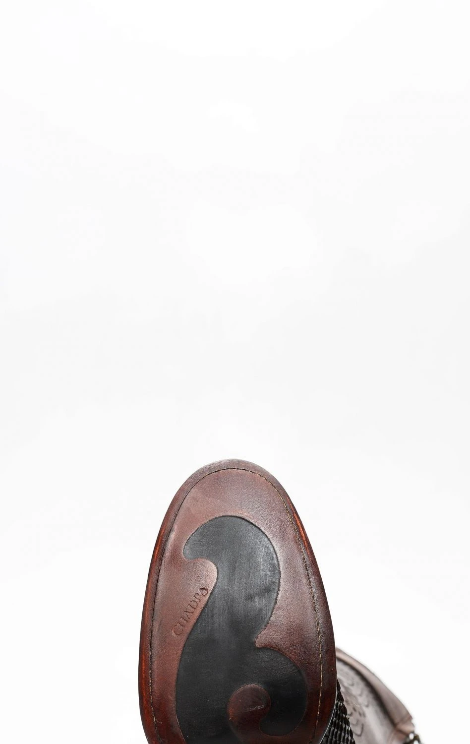 Completamente costruito a mano e prodotto in MESSICO con l’utilizzo della particolare cucitura Goodyear che garantisce al prodotto una confezione artigianale di qualita’ superiore ed offre, insieme alla chiodatura prevalentemente in legno con chiodi in acero, estrema durata e grande comfort.