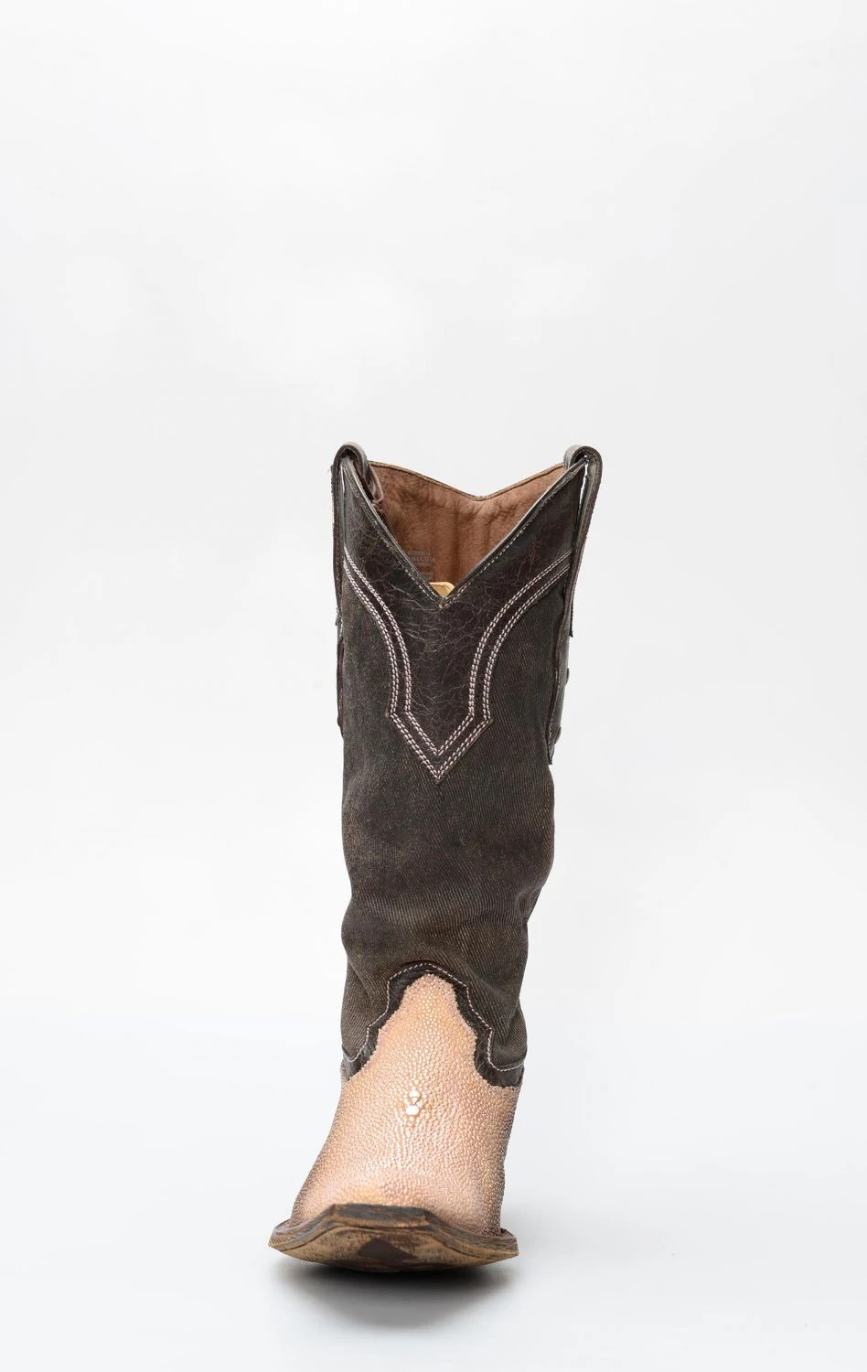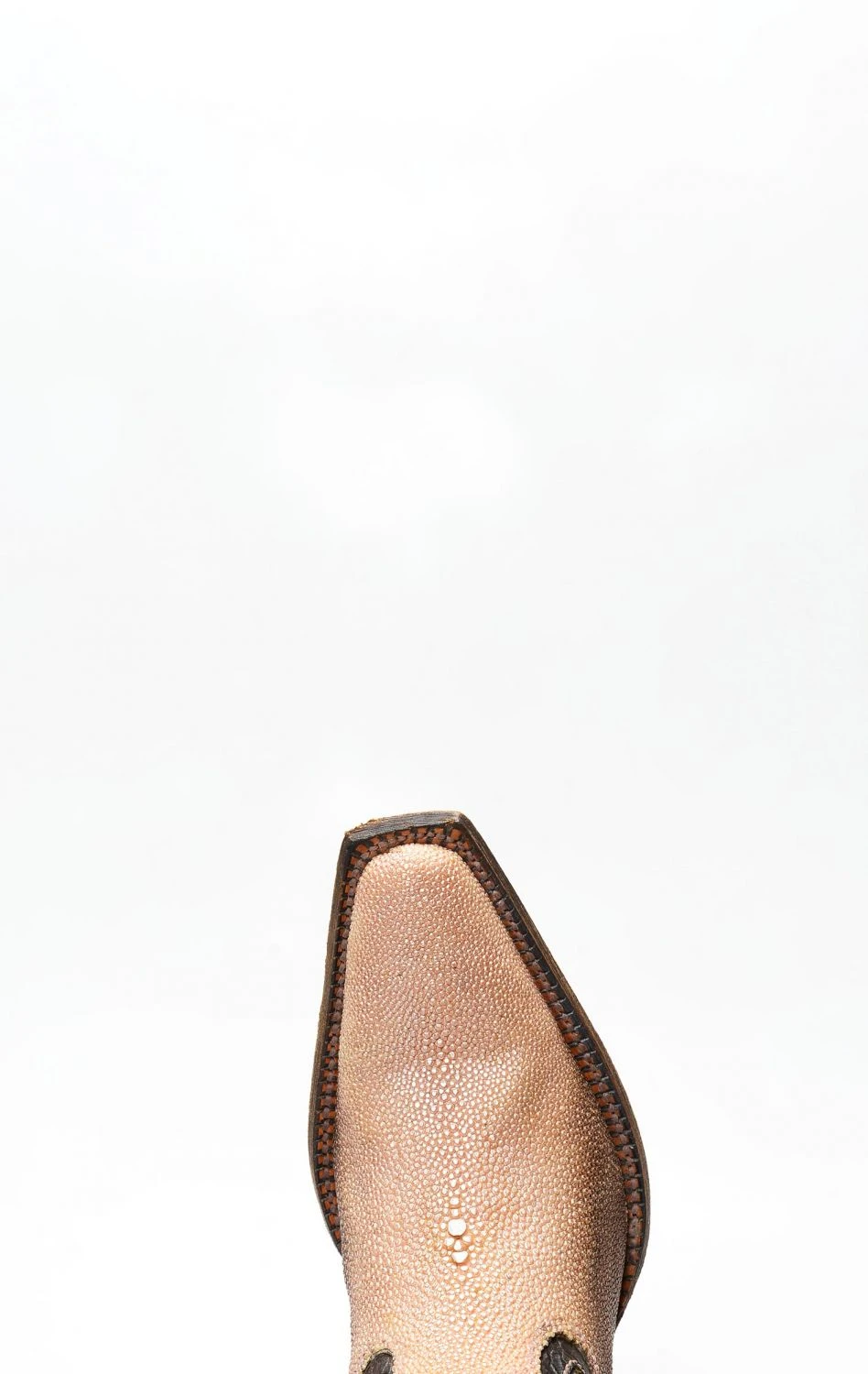 stivale confezionato in vera pelle esotica, importata con regolare e speciale certificazione cites, di manta di colore rosa sfumato, completamente rifinito all’interno in fior di pelle e con suola in cuoio.