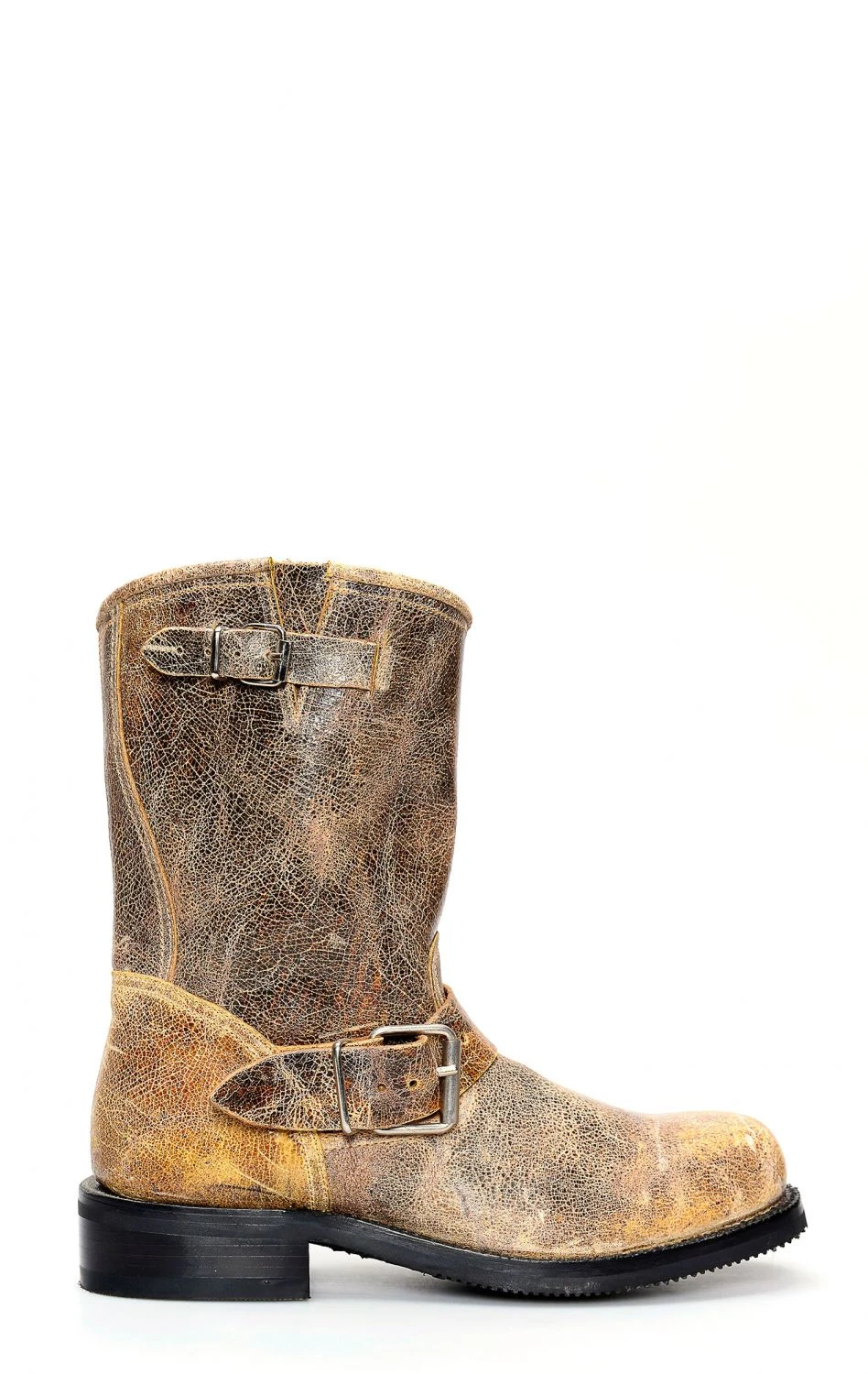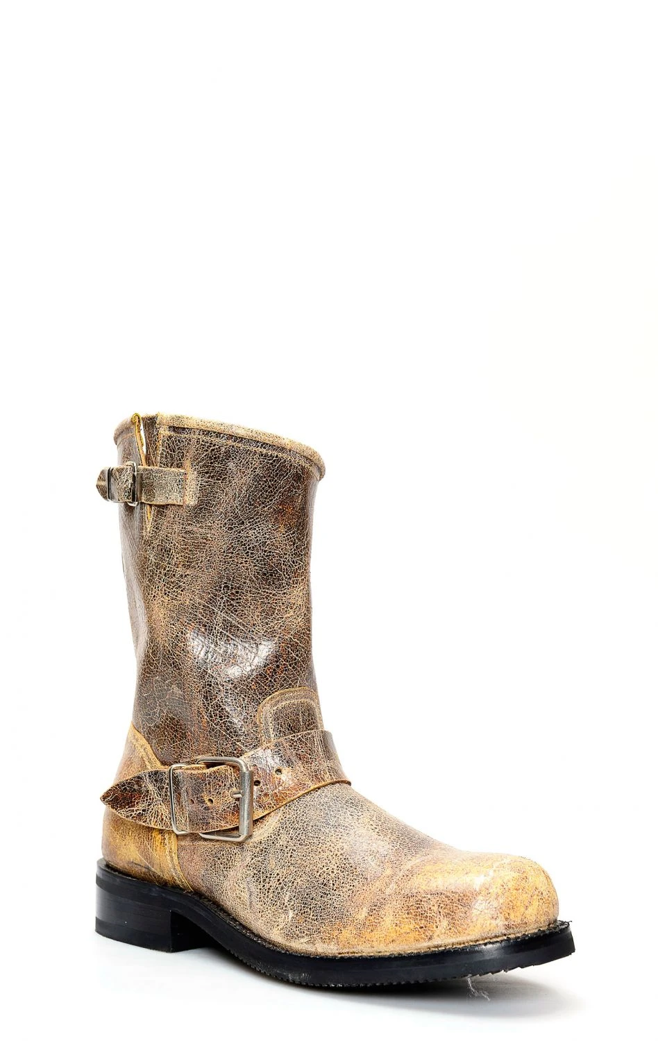 Stivali Jalisco biker in pelle invecchiata spazzolata chiara