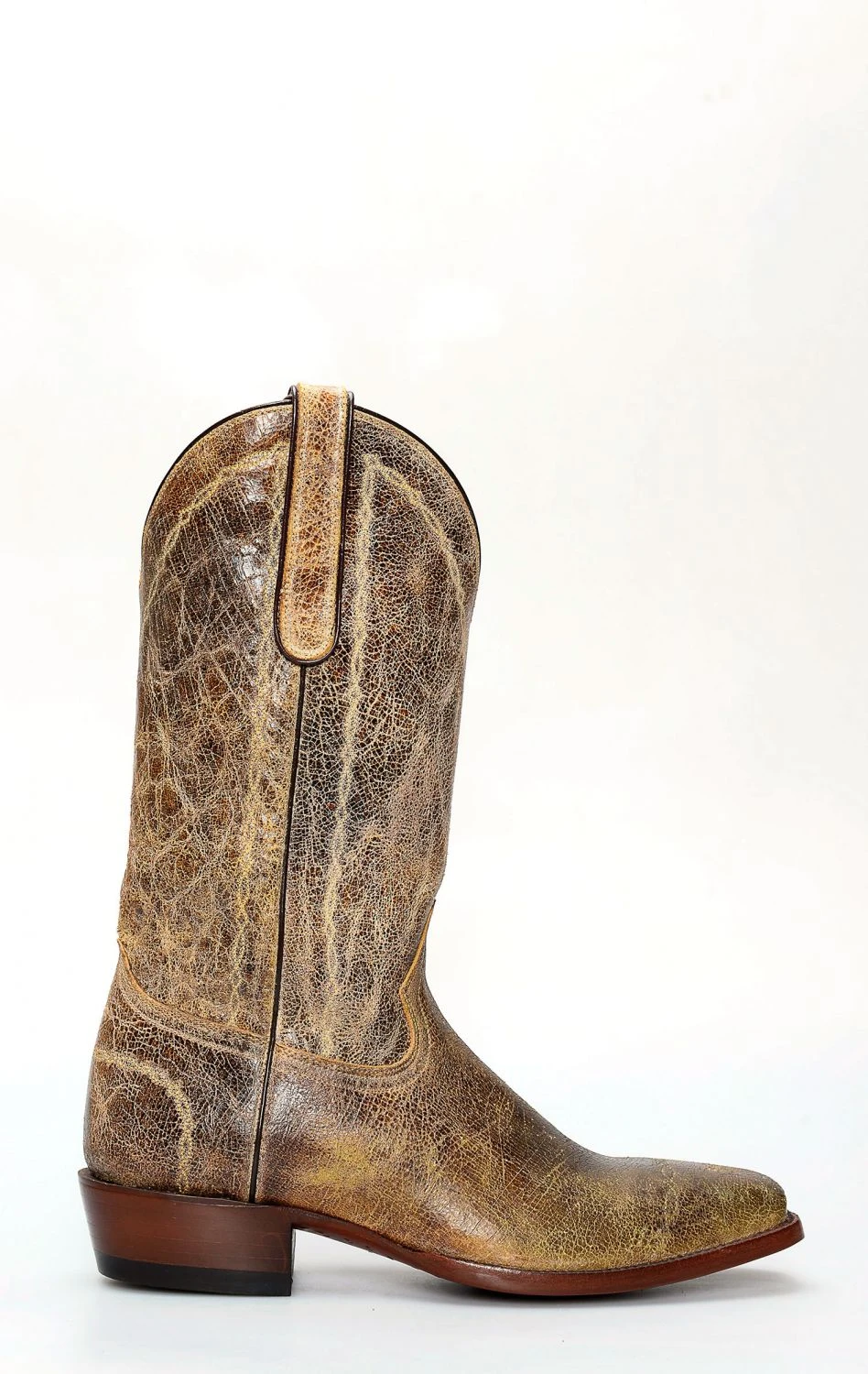Stivali Jalisco con punta squadrata e pelle invecchiata chiara. Versione alternativa del classico texano.