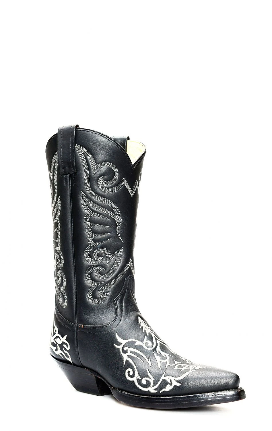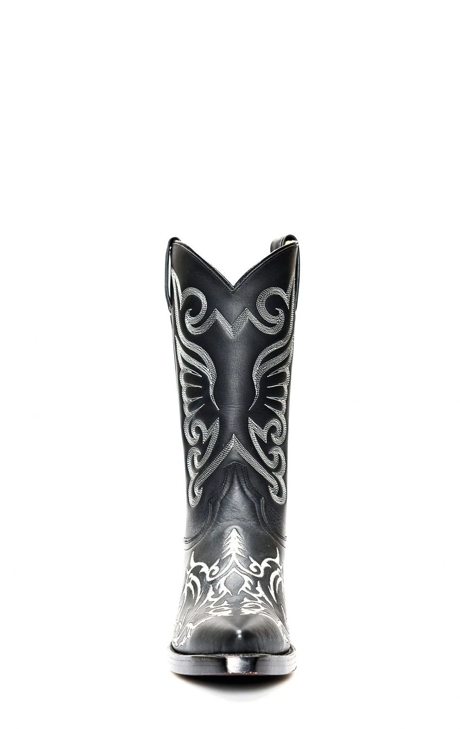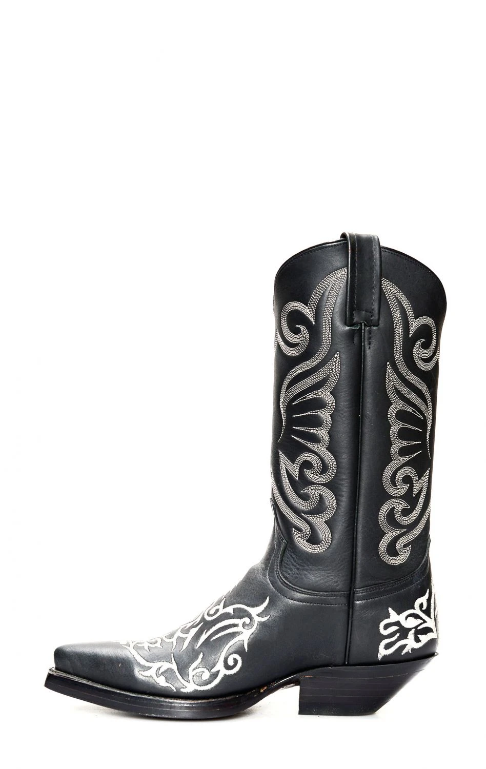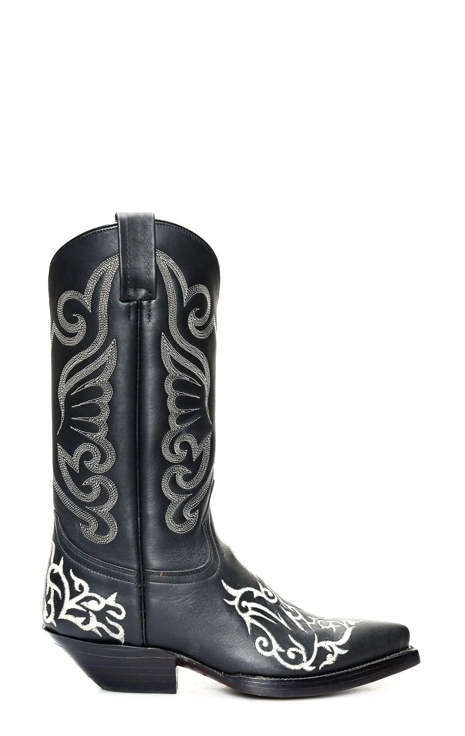 Stivali Jalisco nero con ricamo bianco a contrasto