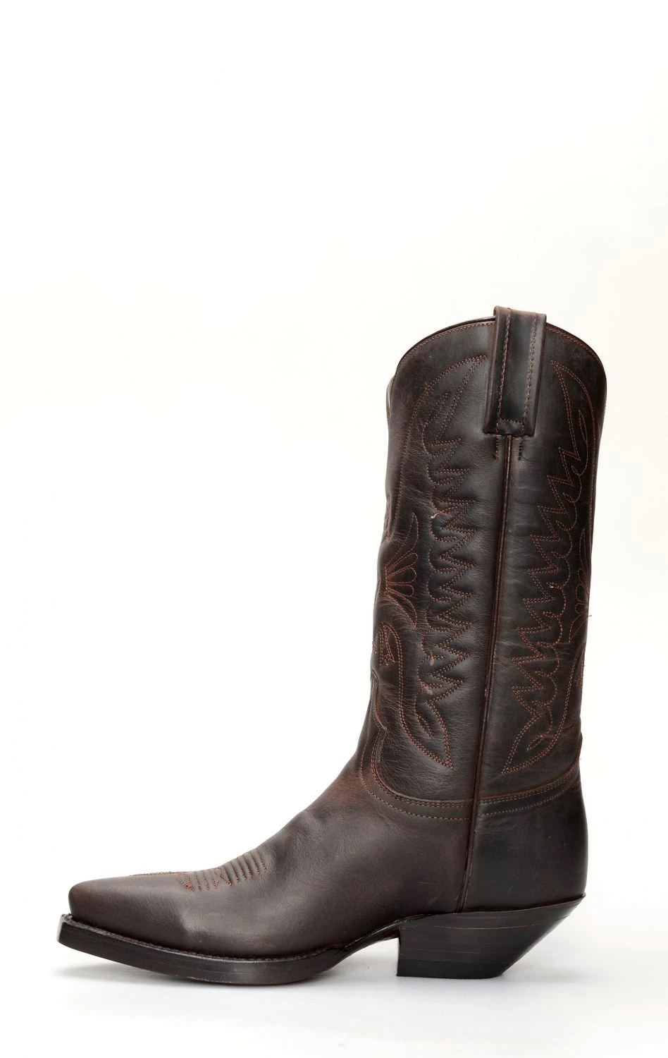 Stivale confezionato in pelle genuina di vitello di colore testa di moro, completamente rifinito all’interno in fior di pelle e con suola in doppia suola in cuoio.