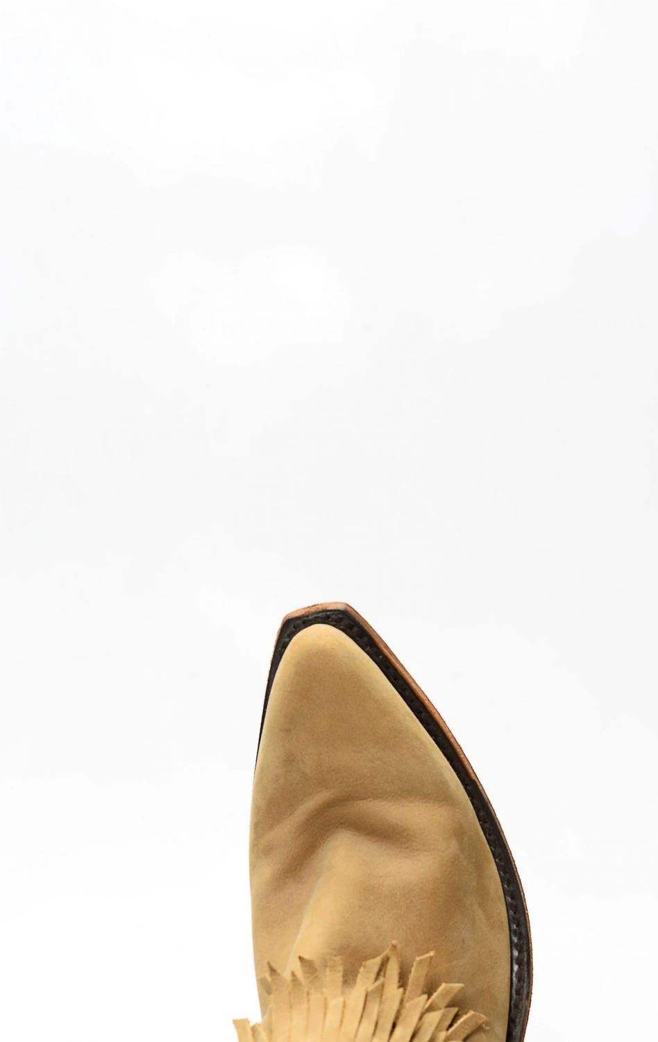 Stivali Liberty Black color sabbia con frange e gambale basso. Splendido.