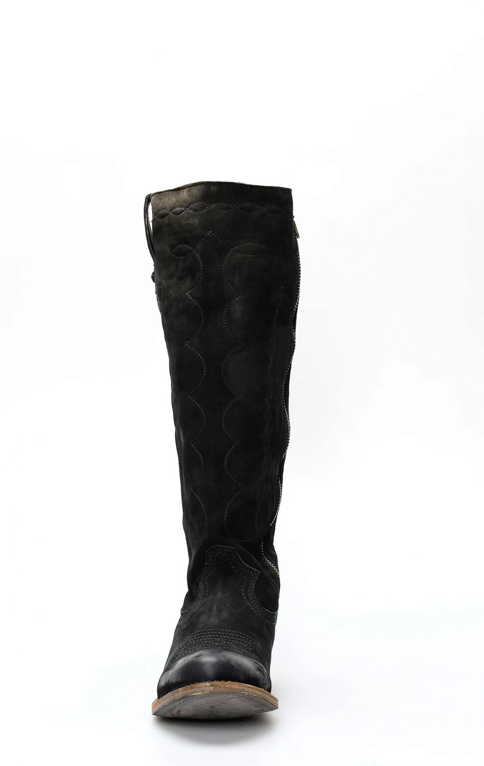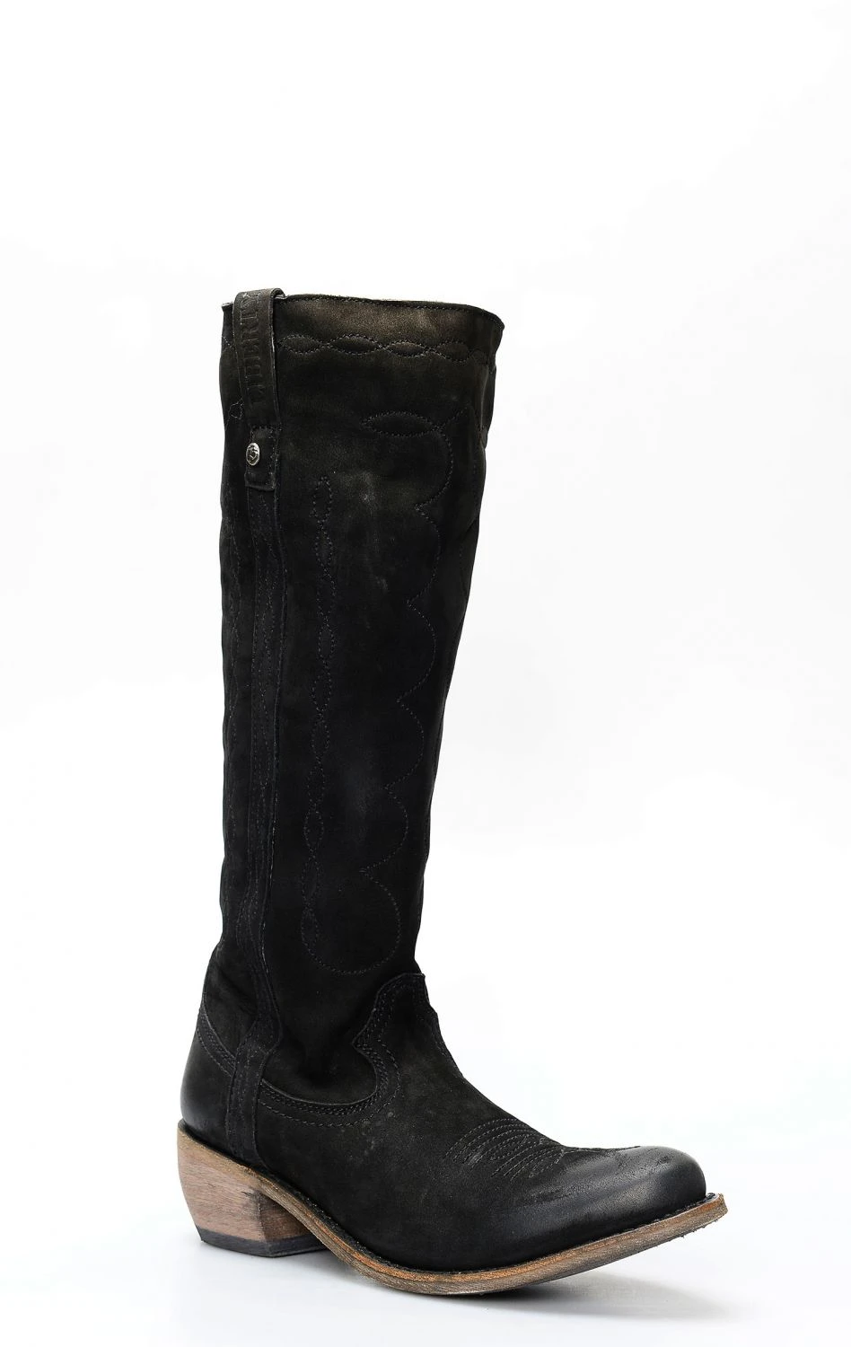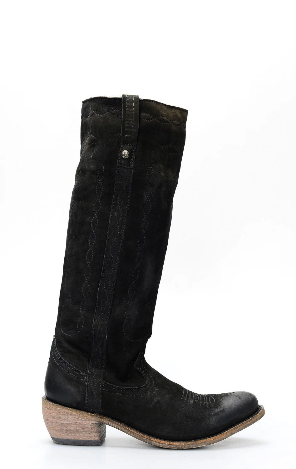 Stivali Liberty Black in pelle nabuk nera. Stile camperos con gambale alto, punta rotonda e cerniera interna.