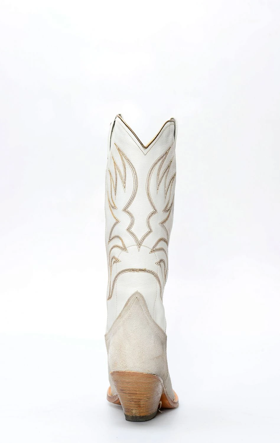 Stivali Sendra bianco con tacco rialzato e bordature oro a contrasto.