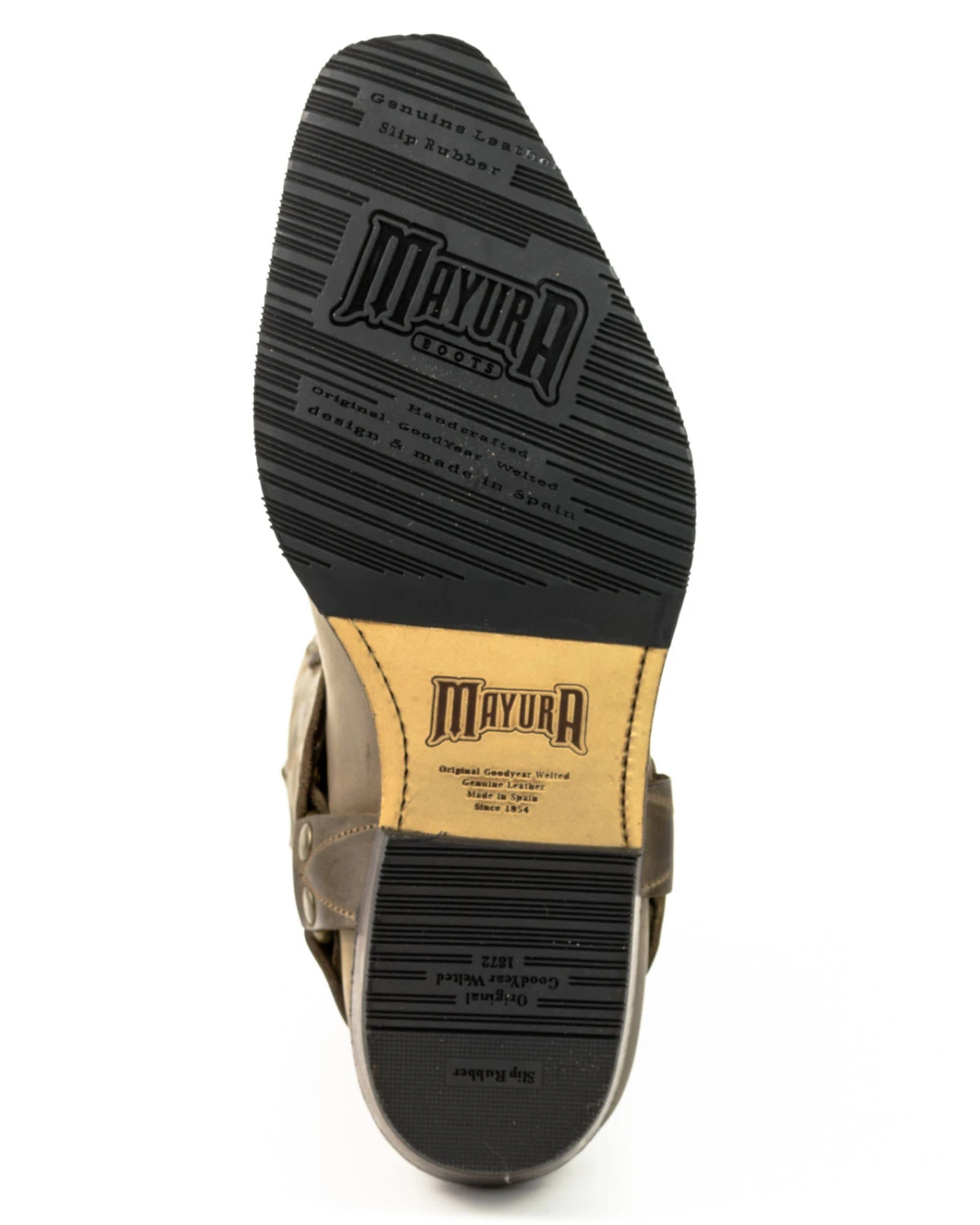 Completamente costruito a mano e prodotto in Spagna con l’utilizzo della particolare cucitura Goodyear che garantisce al prodotto una confezione artigianale di qualita’ superiore ed offre, insieme alla chiodatura prevalentemente in legno con chiodi in acero, estrema durata e grande comfort.