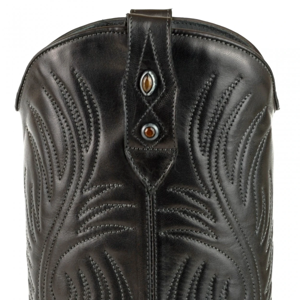 Stivale confezionato in pelle genuina di vitello di colore nero, completamente rifinito all’interno in fior di pelle e con suola in cuoio.