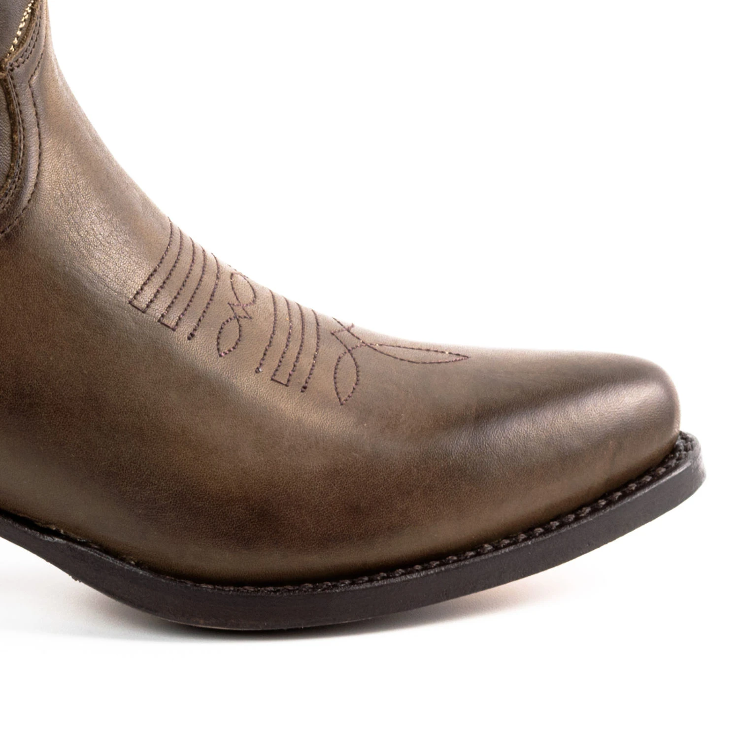 Stivale confezionato in pelle genuina di vitello di colore marrone chiaro, completamente rifinito all’interno in fior di pelle e con suola in cuoio.
