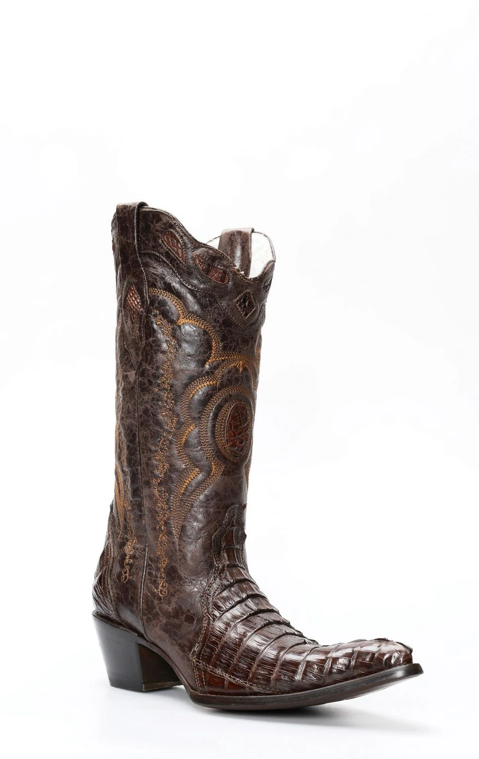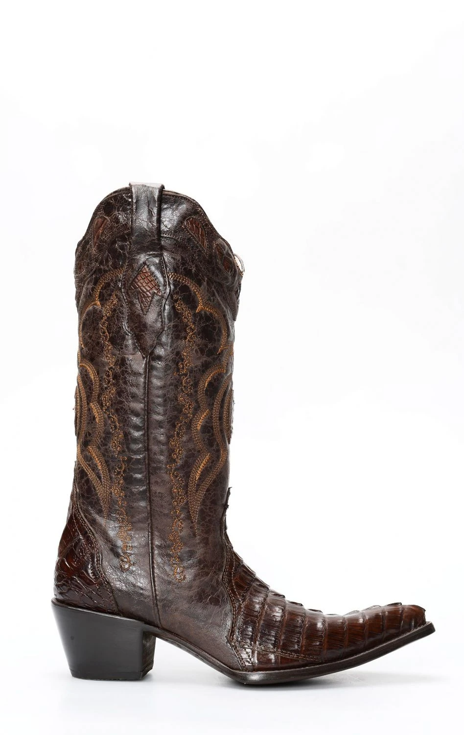 Stivali Cuadra by Frida in pelle di coccodrillo testa di moro. Classico texano rivisto con un tocco particolarmente femminile. Un piccolo gioiello da non perdere.