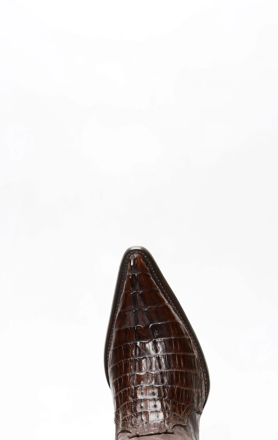 stivale confezionato in vera pelle esotica, importata con regolare e speciale certificazione cites, di coccodrillo di colore testa di moro, completamente rifinito all’interno in fior di pelle e con suola in cuoio.