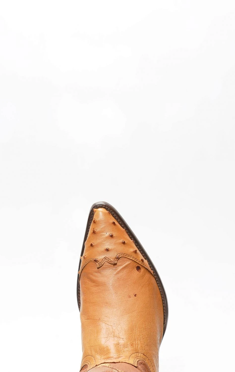 stivale confezionato in vera pelle esotica, importata con regolare e speciale certificazione cites, di pancia di struzzo di colore miele, completamente rifinito all’interno in fior di pelle e con suola in cuoio.
