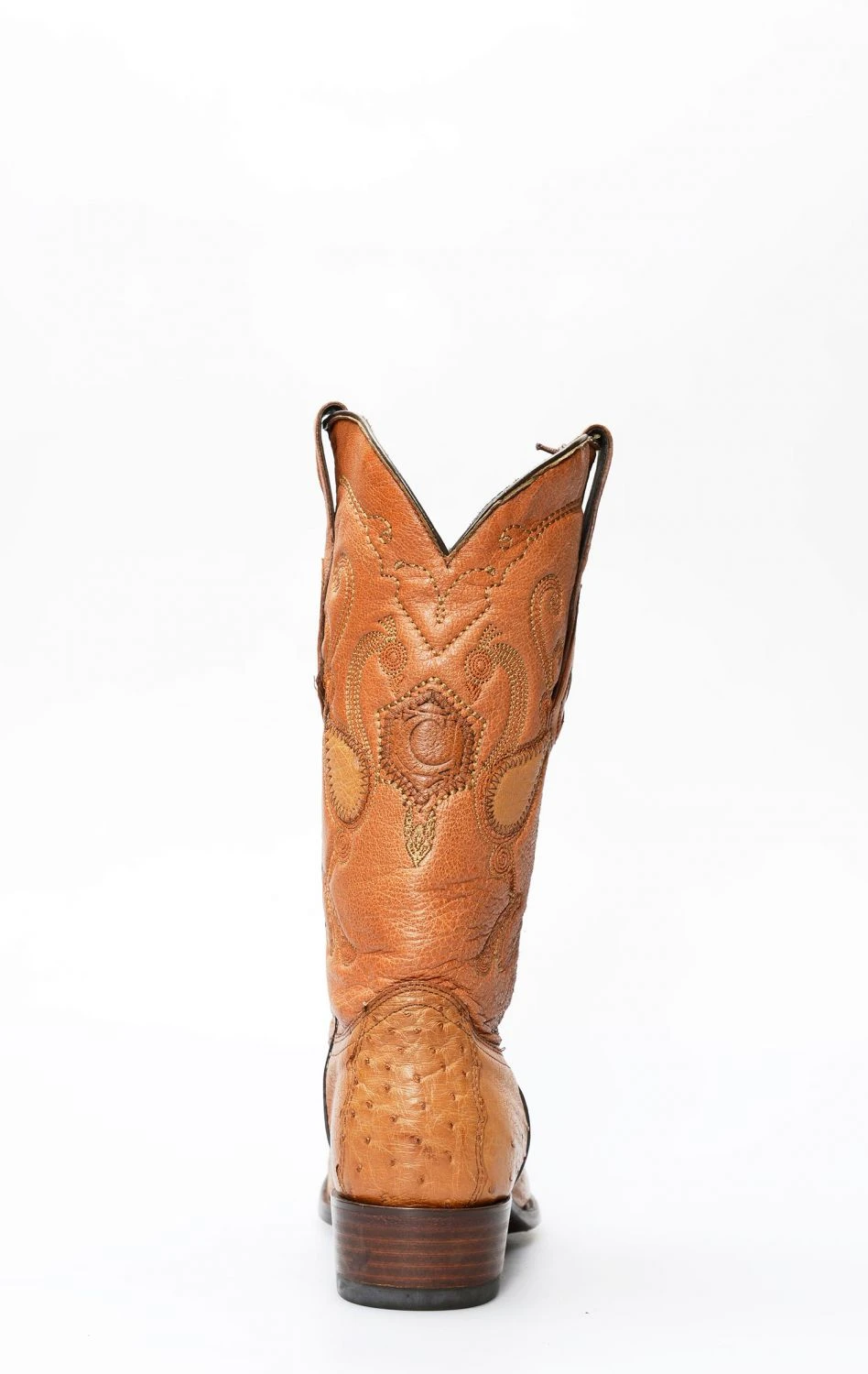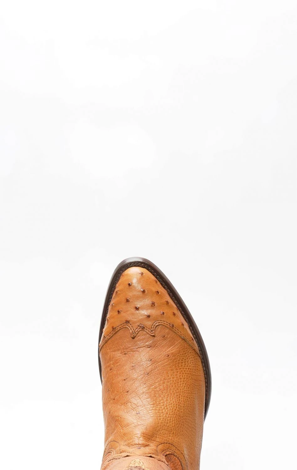 stivale confezionato in vera pelle esotica, importata con regolare e speciale certificazione cites, di pancia di struzzo di colore miele, completamente rifinito all’interno in fior di pelle e con suola in cuoio.