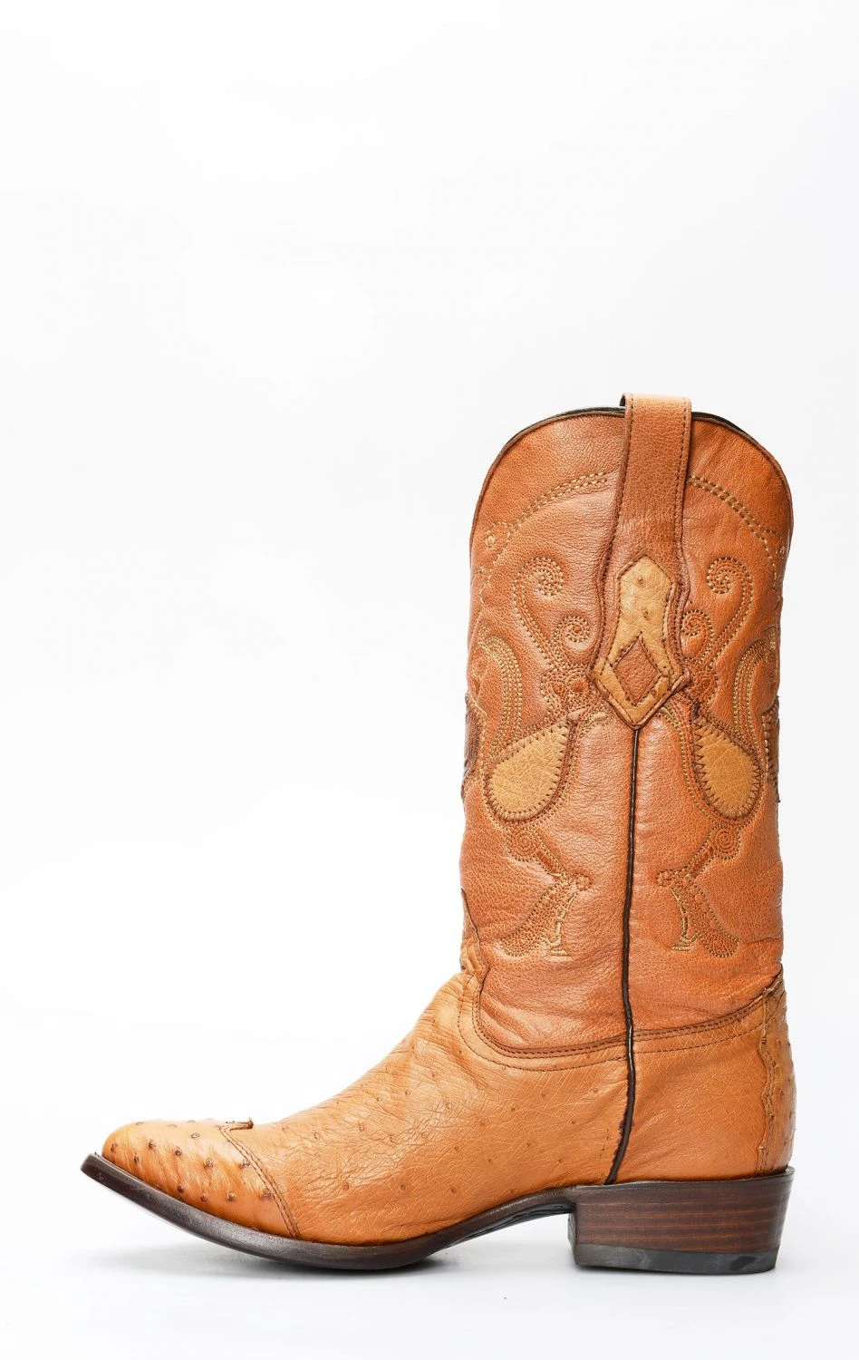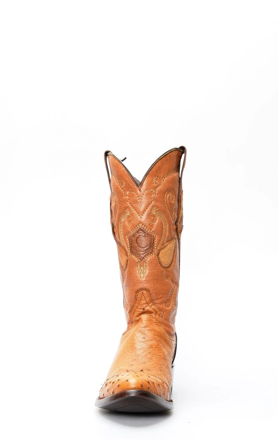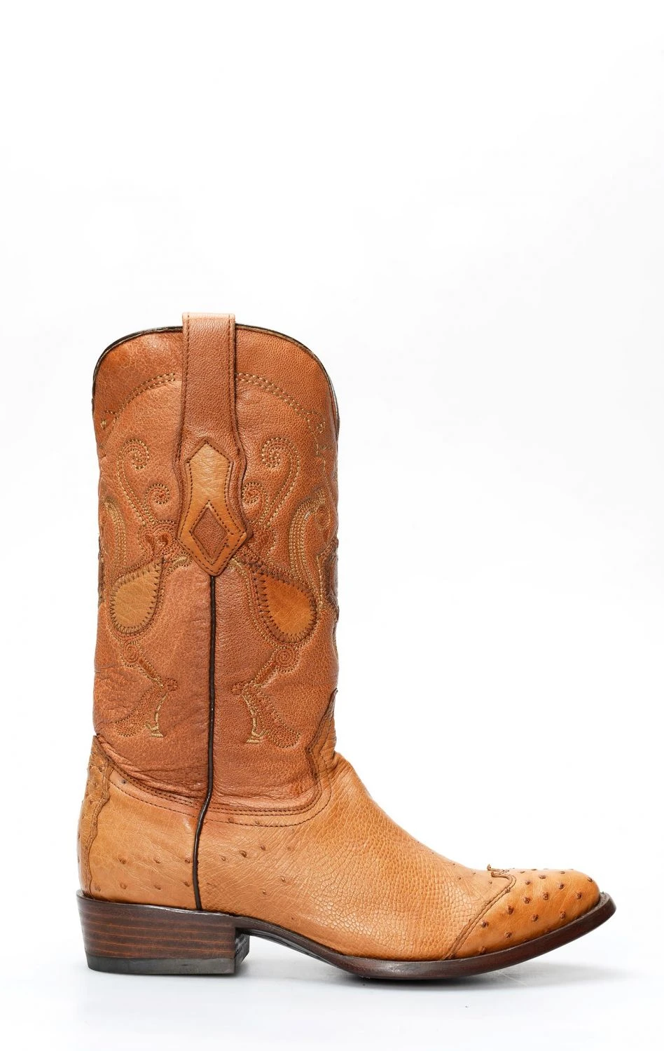 Stivali Cuadra color miele in pelle di pancia di struzzo con puntale in spalla. Finitura particolare per questo pellame sempre eccezionalmente confortevole.