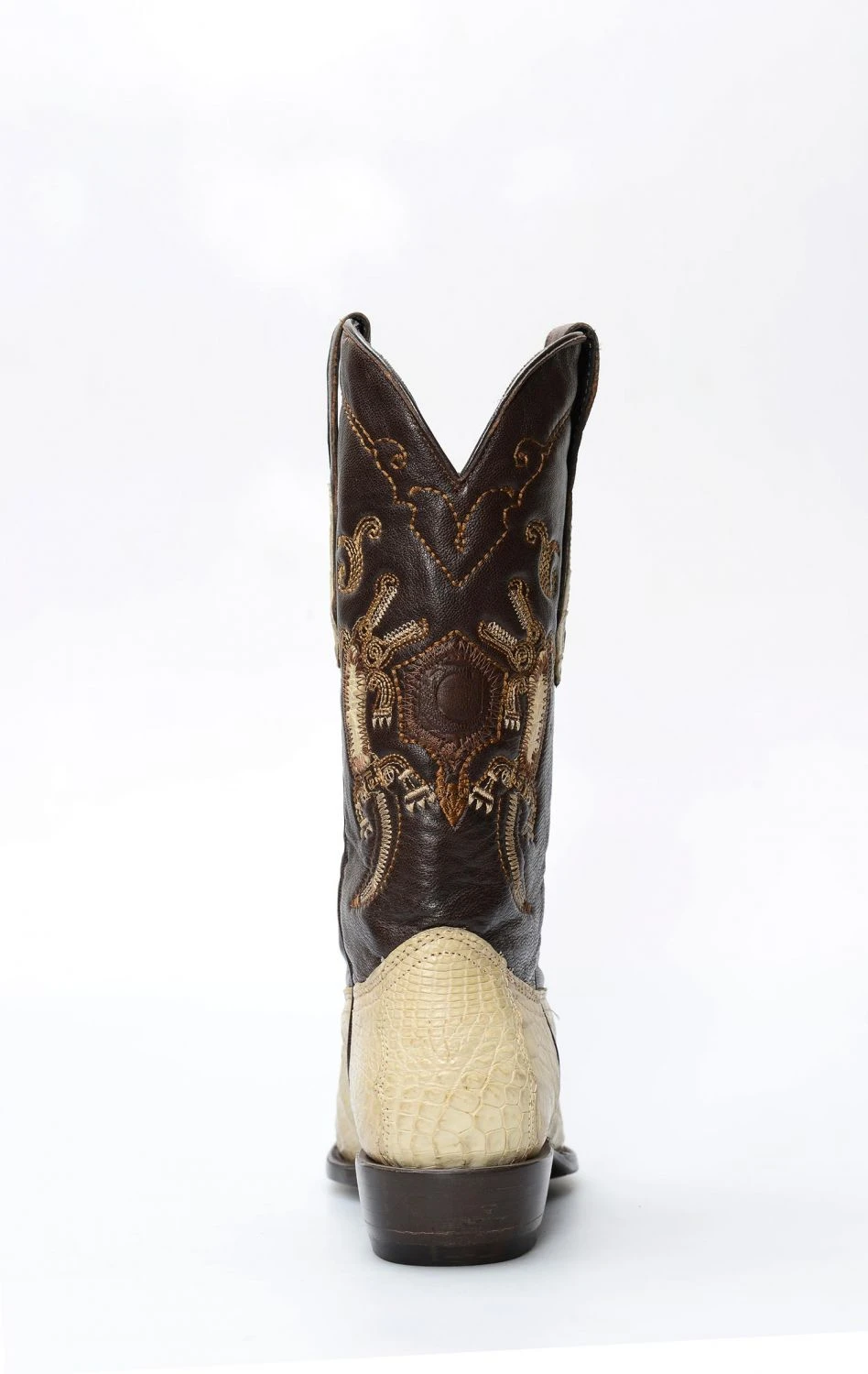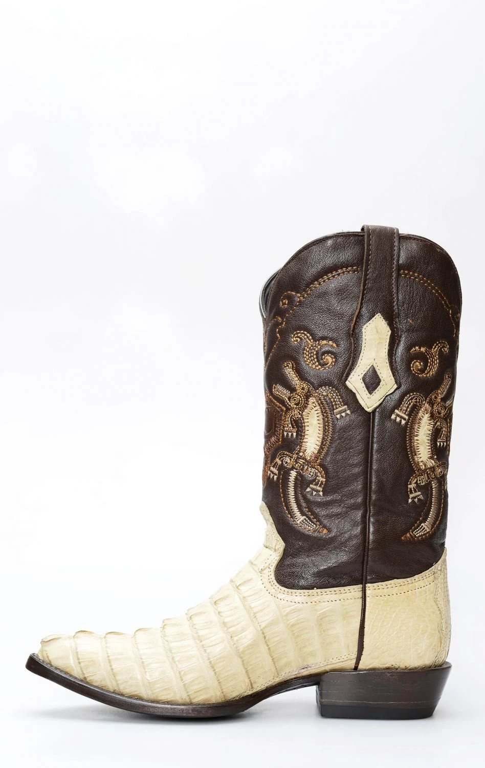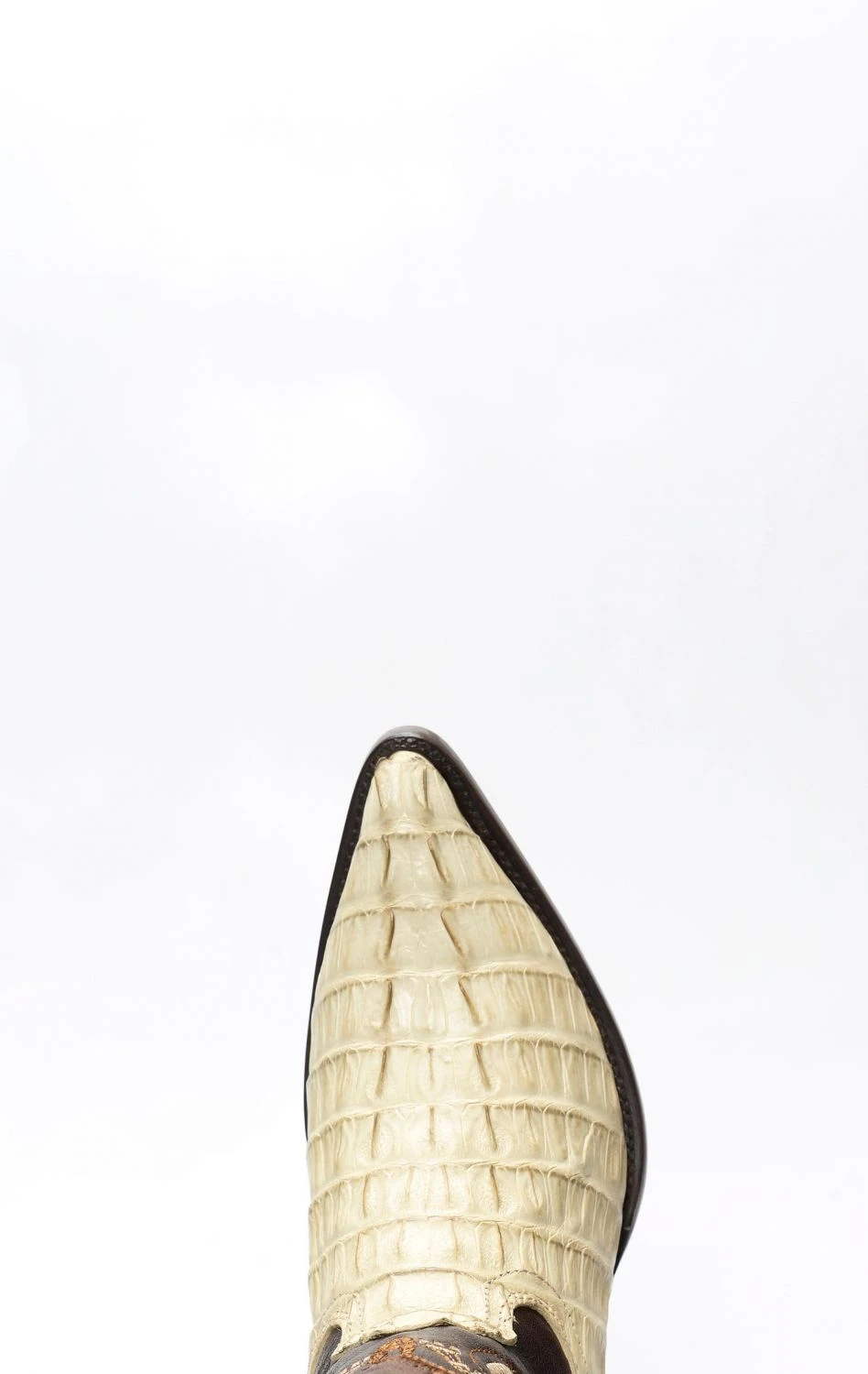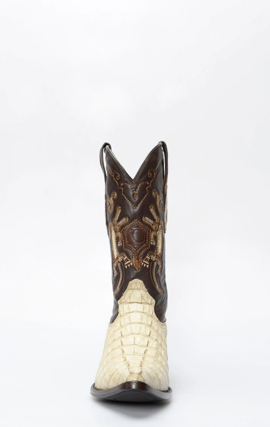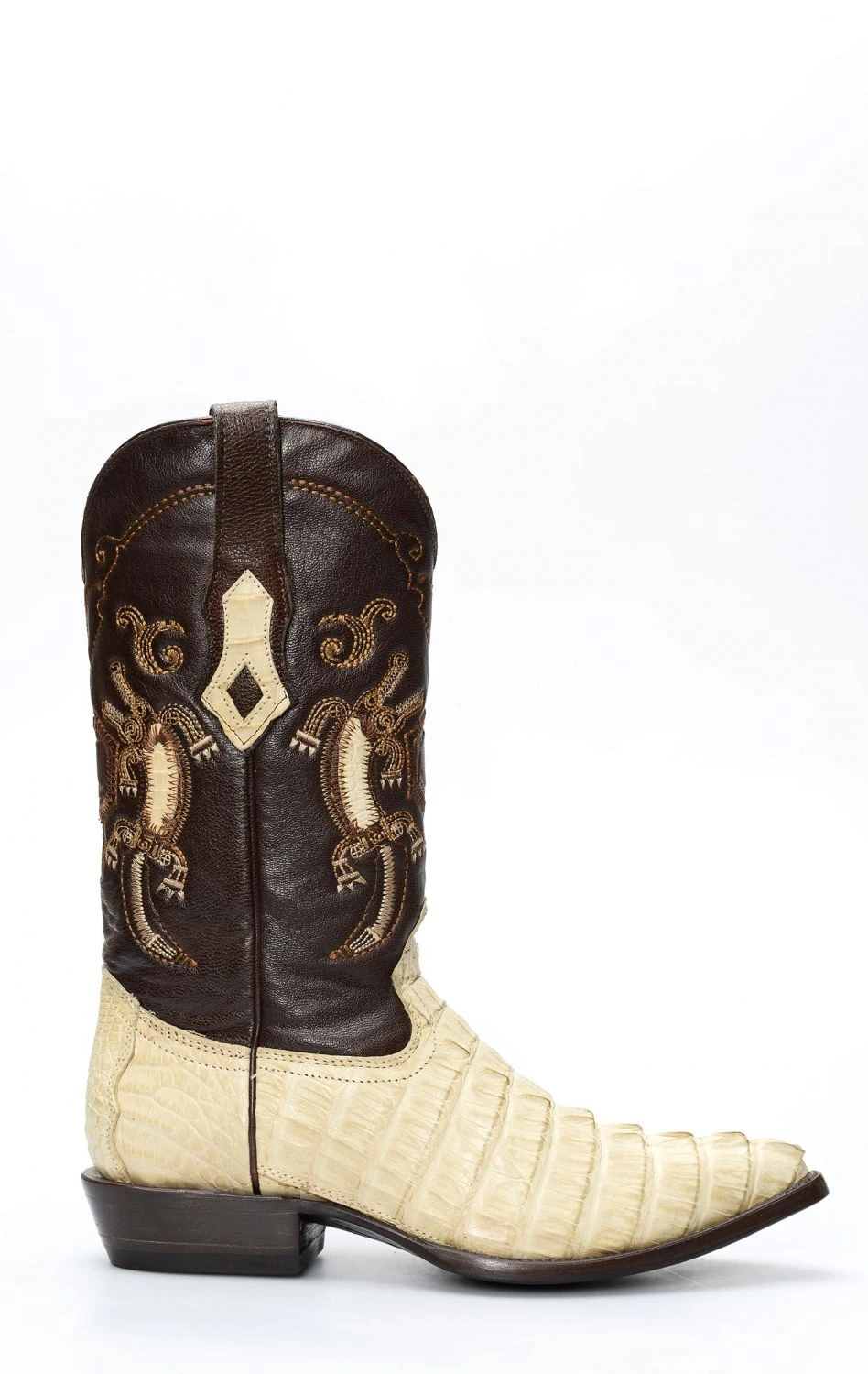 Stivali Cuadra in pelle di coccodrillo bianco invecchiato. Finitura classica.
