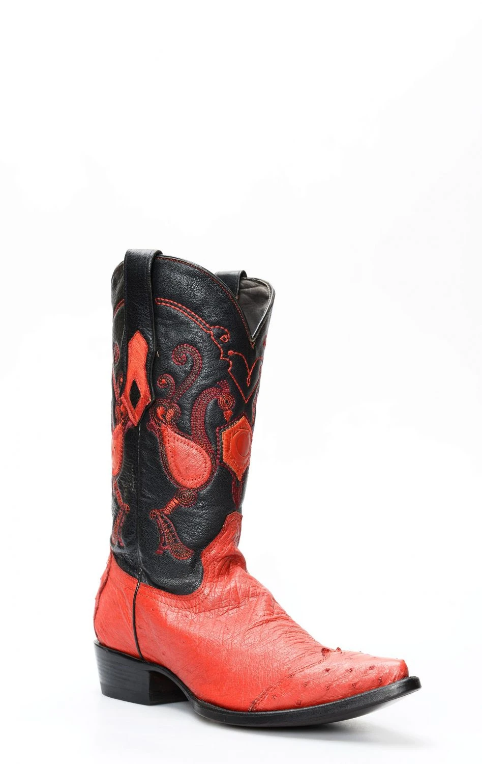 Stivali Cuadra rosso in pelle di pancia di struzzo con puntale in spalla. Finitura particolare per questo pellame sempre eccezionalmente confortevole.