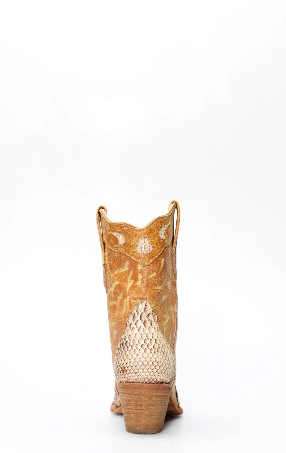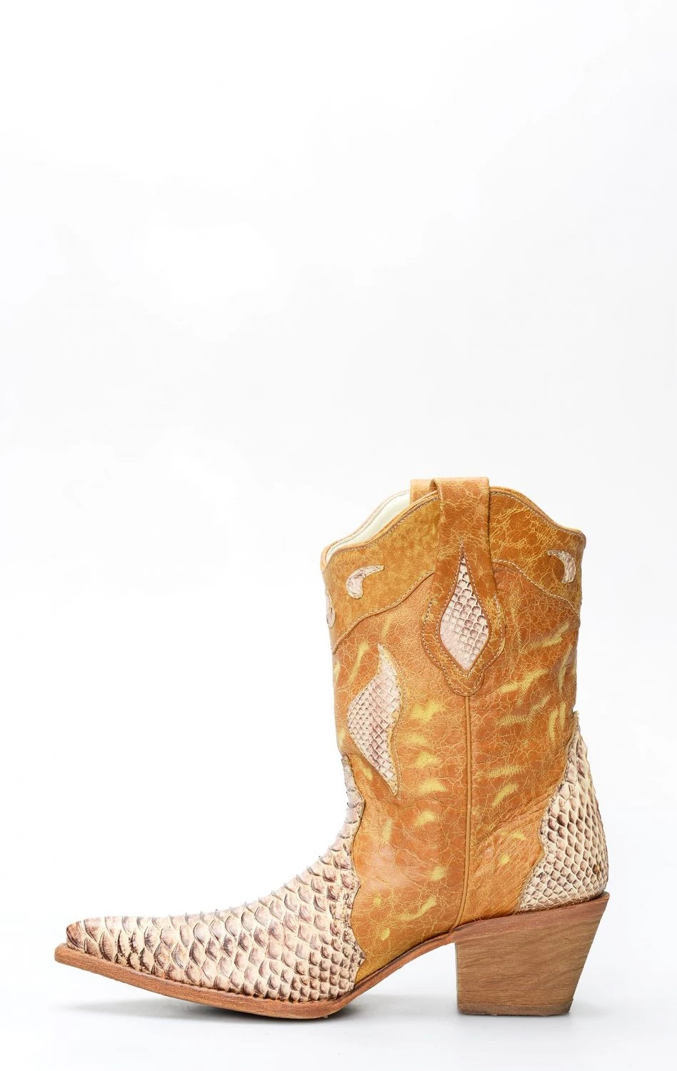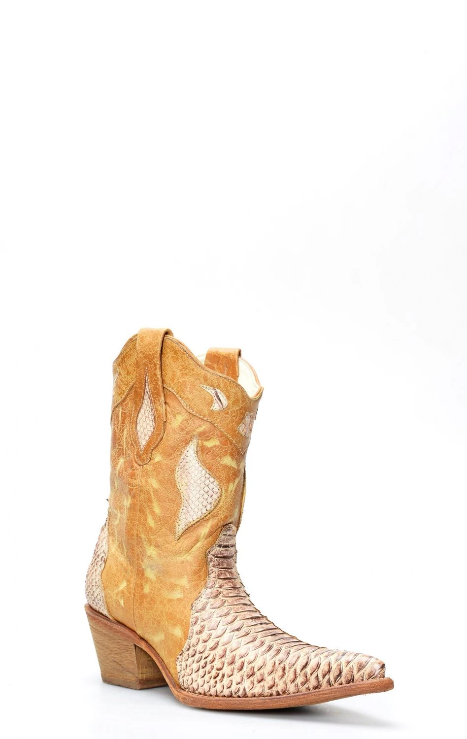 Stivali Frida by Cuadra color paglia in pelle di pitone. Tacco rialzato e gambale basso.