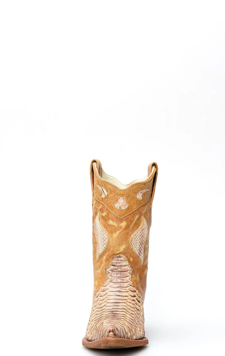Stivali Texani Frida by Cuadra color paglia in pelle di pitone
