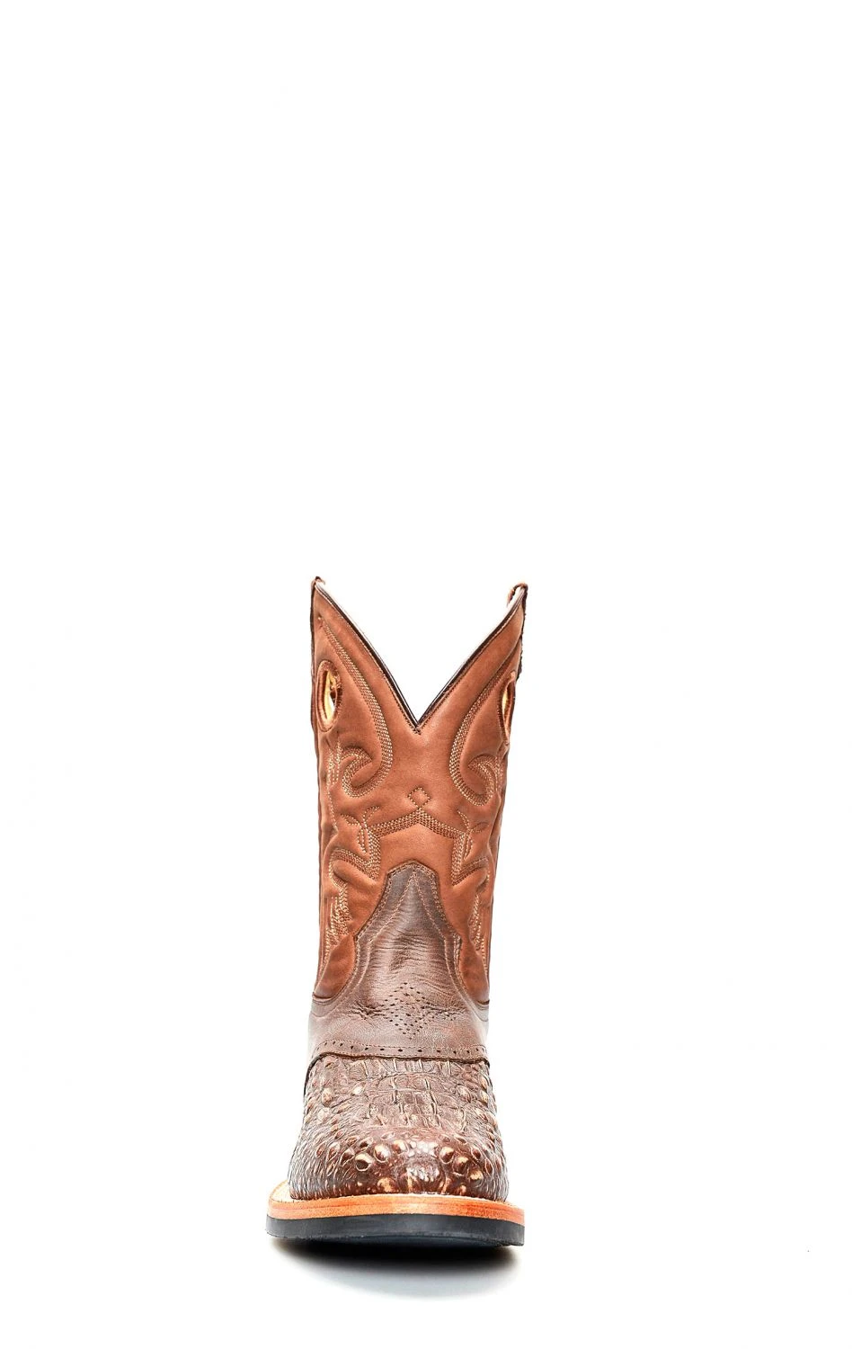 Stivali Jalisco da lavoro marrone stampato coccodrillo. Punta rotnda e suola tecnica in gomma.