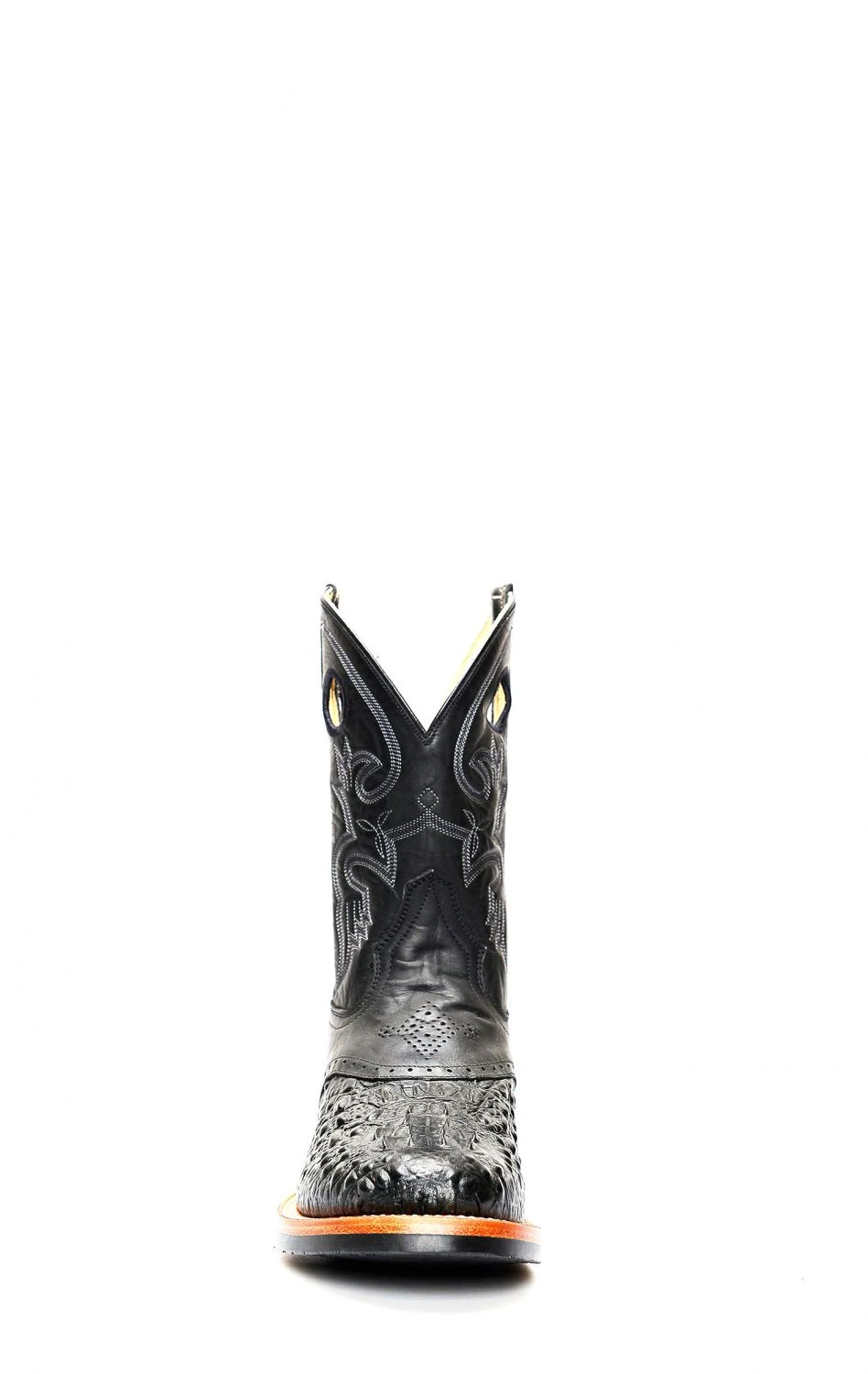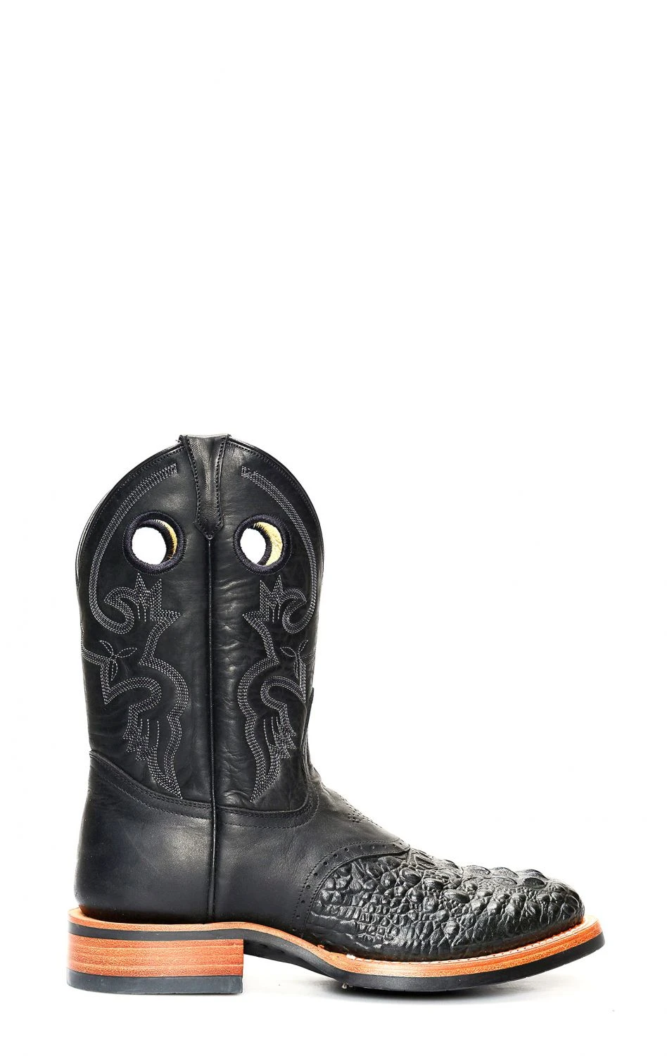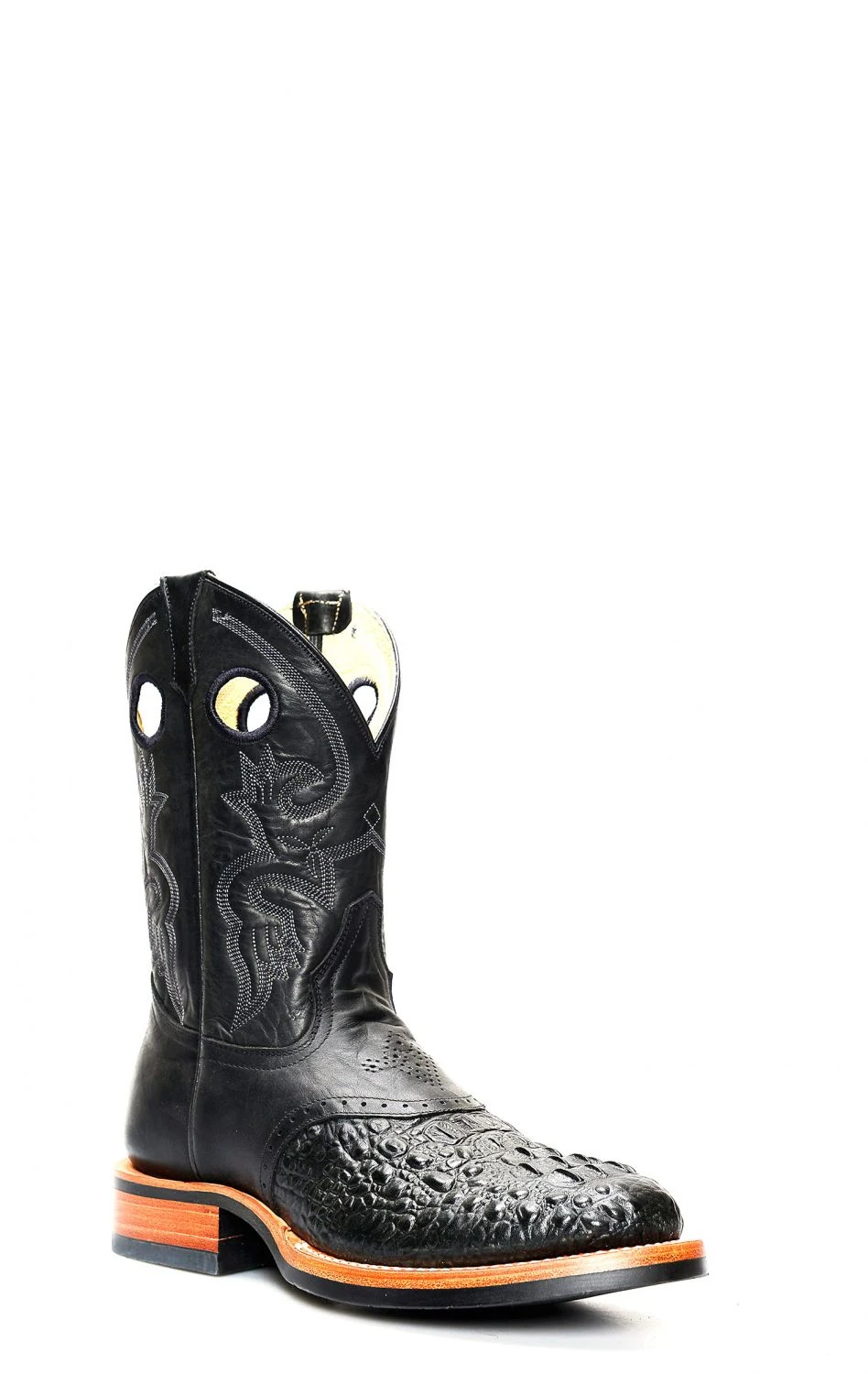 Stivali Jalisco da lavoro neri stampato coccodrillo. Punta rotnda e suola tecnica in gomma.