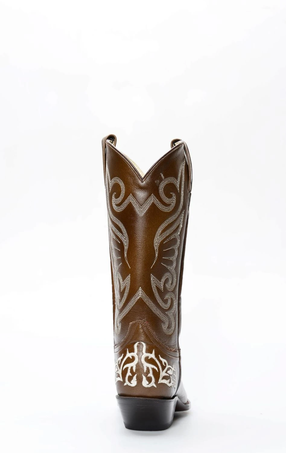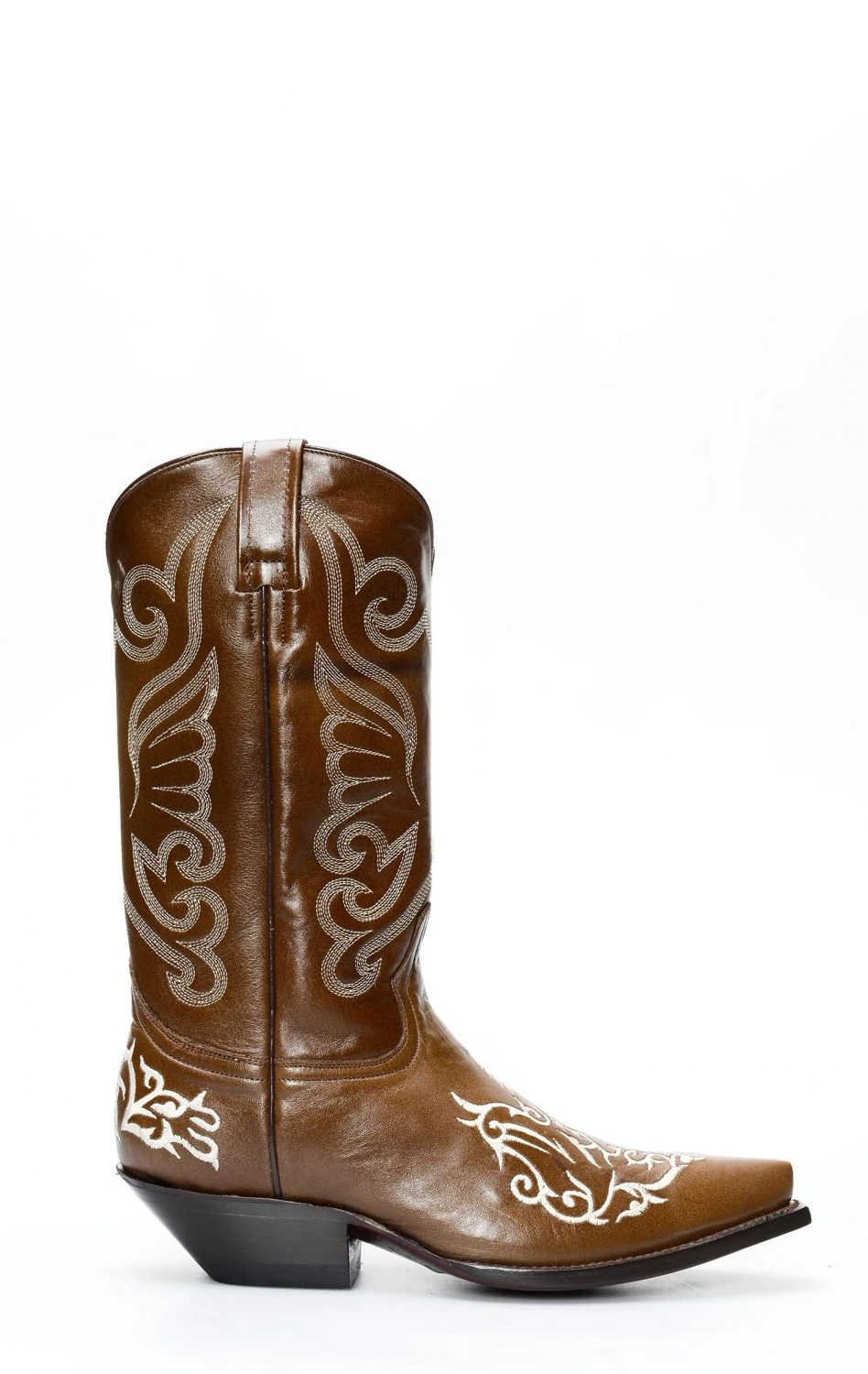 Stivali Jalisco in pelle color marrone con ricamo bianco a contrasto