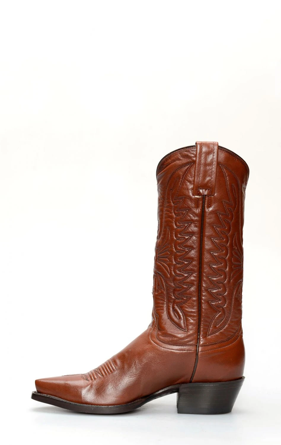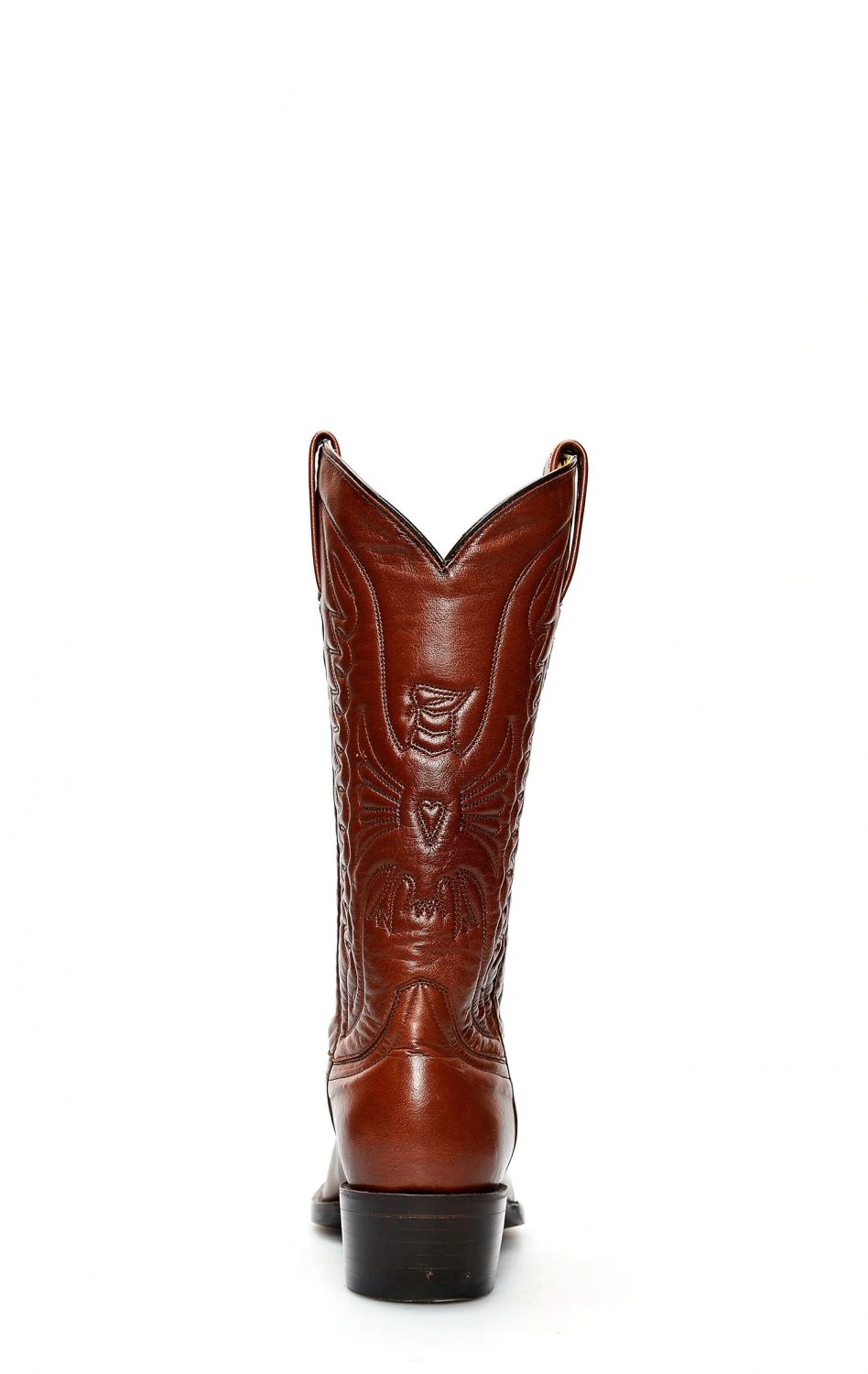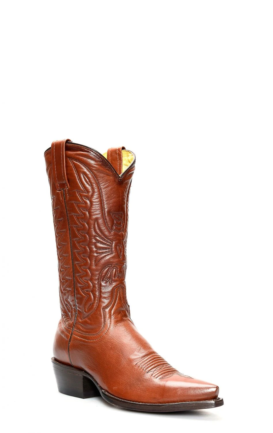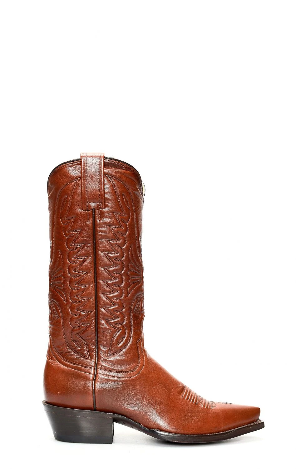 Stivali Jalisco in pelle giovane marrone in stile texano ma tacco classico.