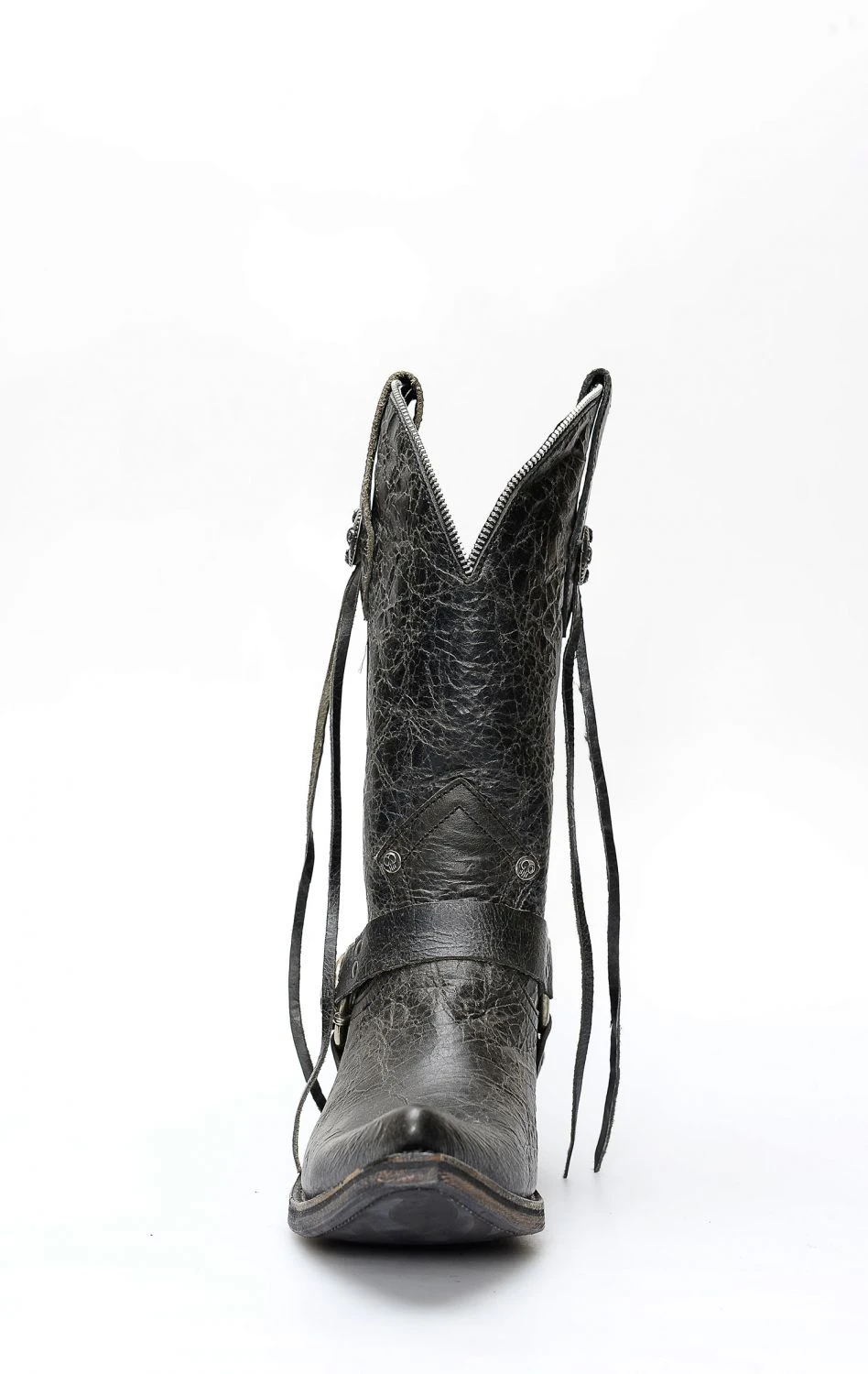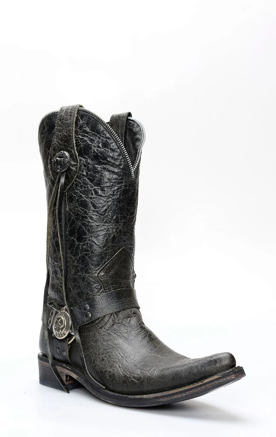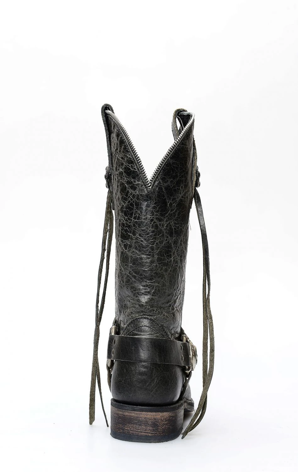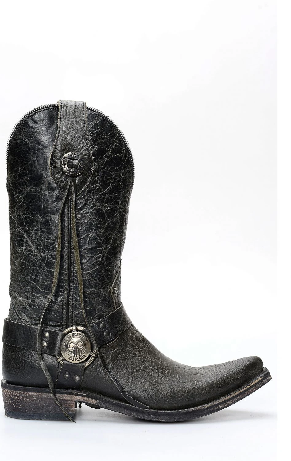 Stivali Liberty Black in pelle nera invecchiata. Splendido riuscitissimo incrocio fra il classico texano ed il classico biker.
