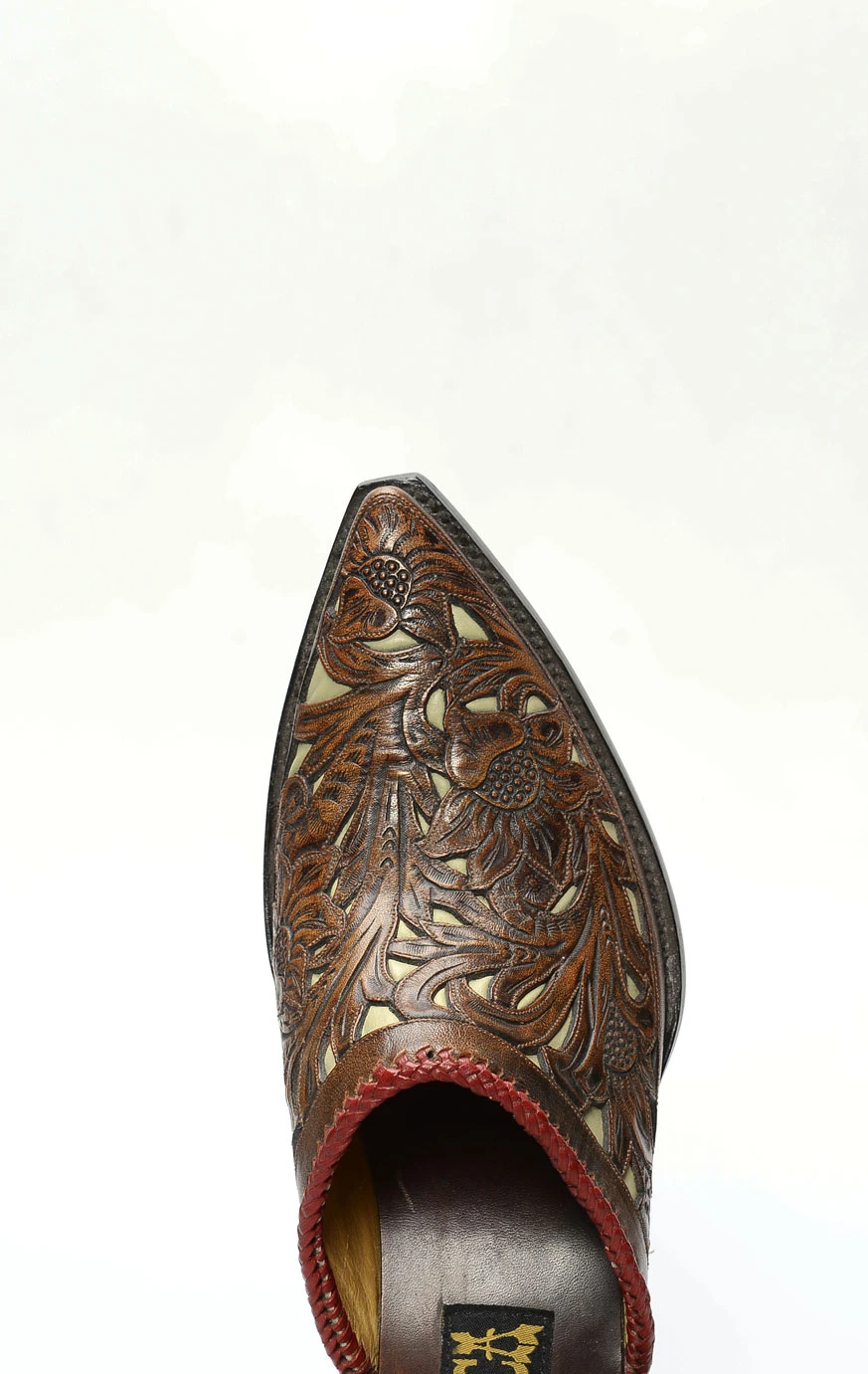 Stivali Caborca sabot della collezione Pineda Covalin con mascherina intarsiata floreale. Una chicca.