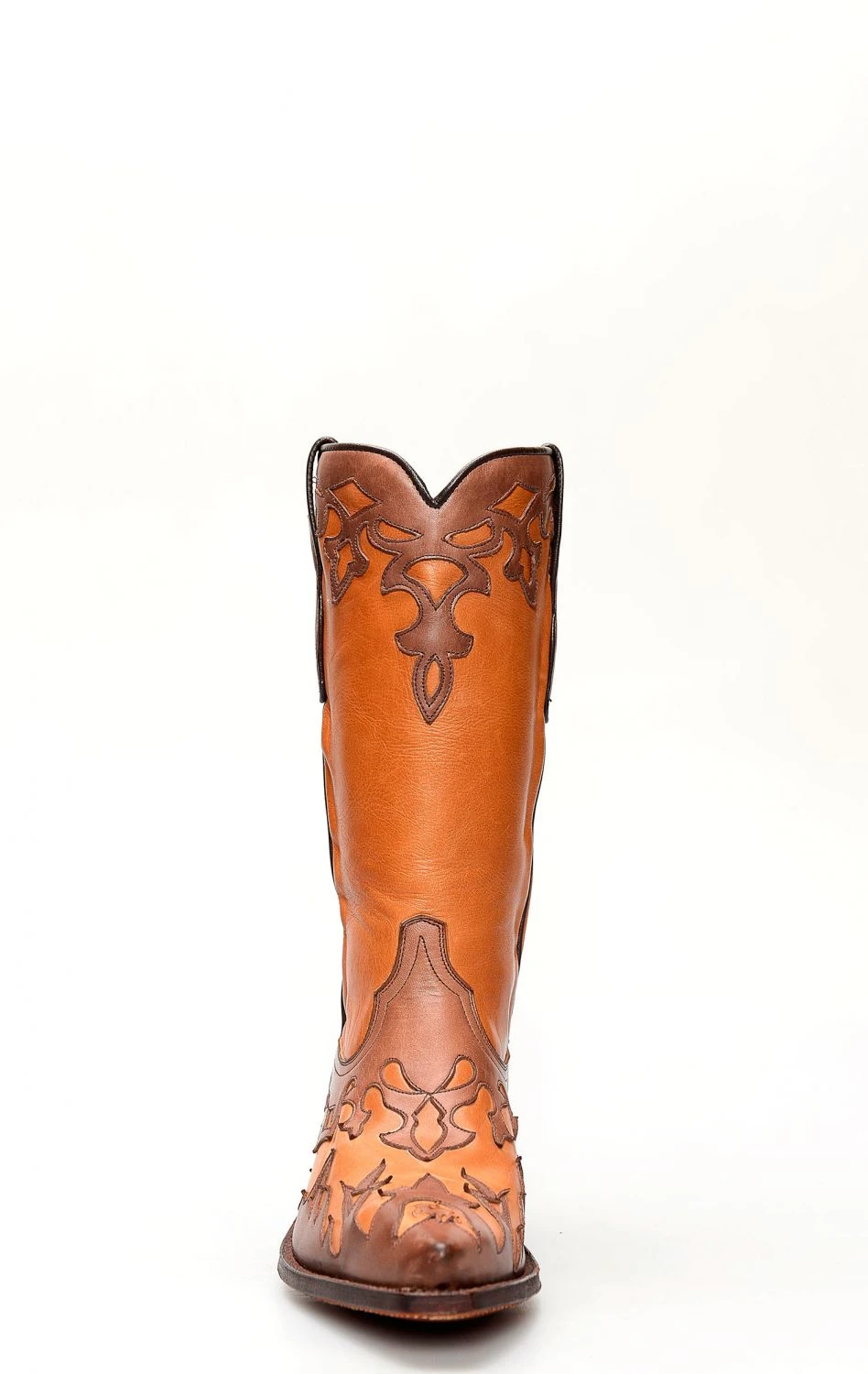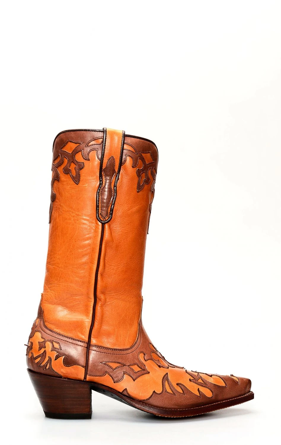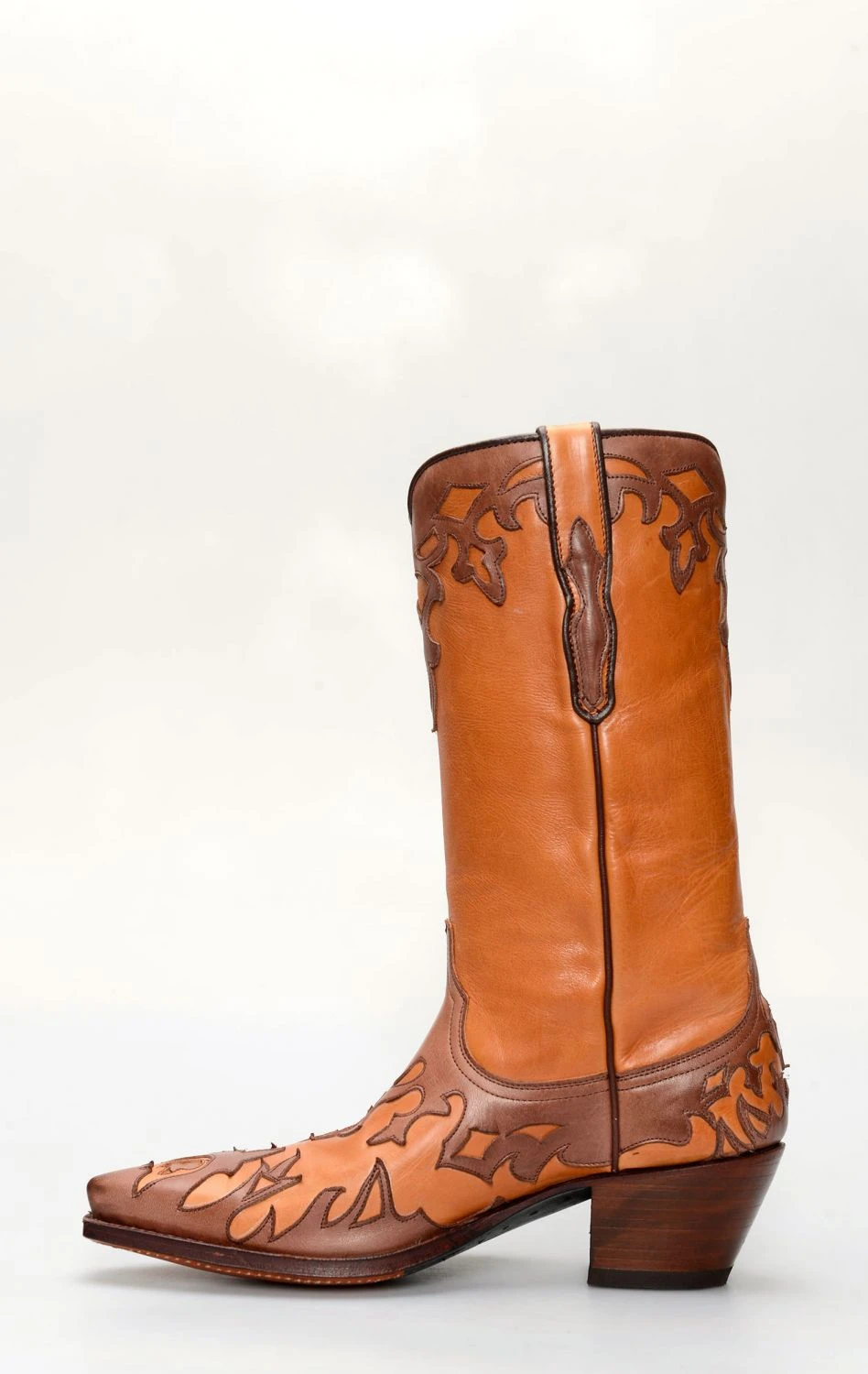 Stivali Tony Mora in pelle color cuoio con splendida mascherina marrone e bordatura a contrasto.