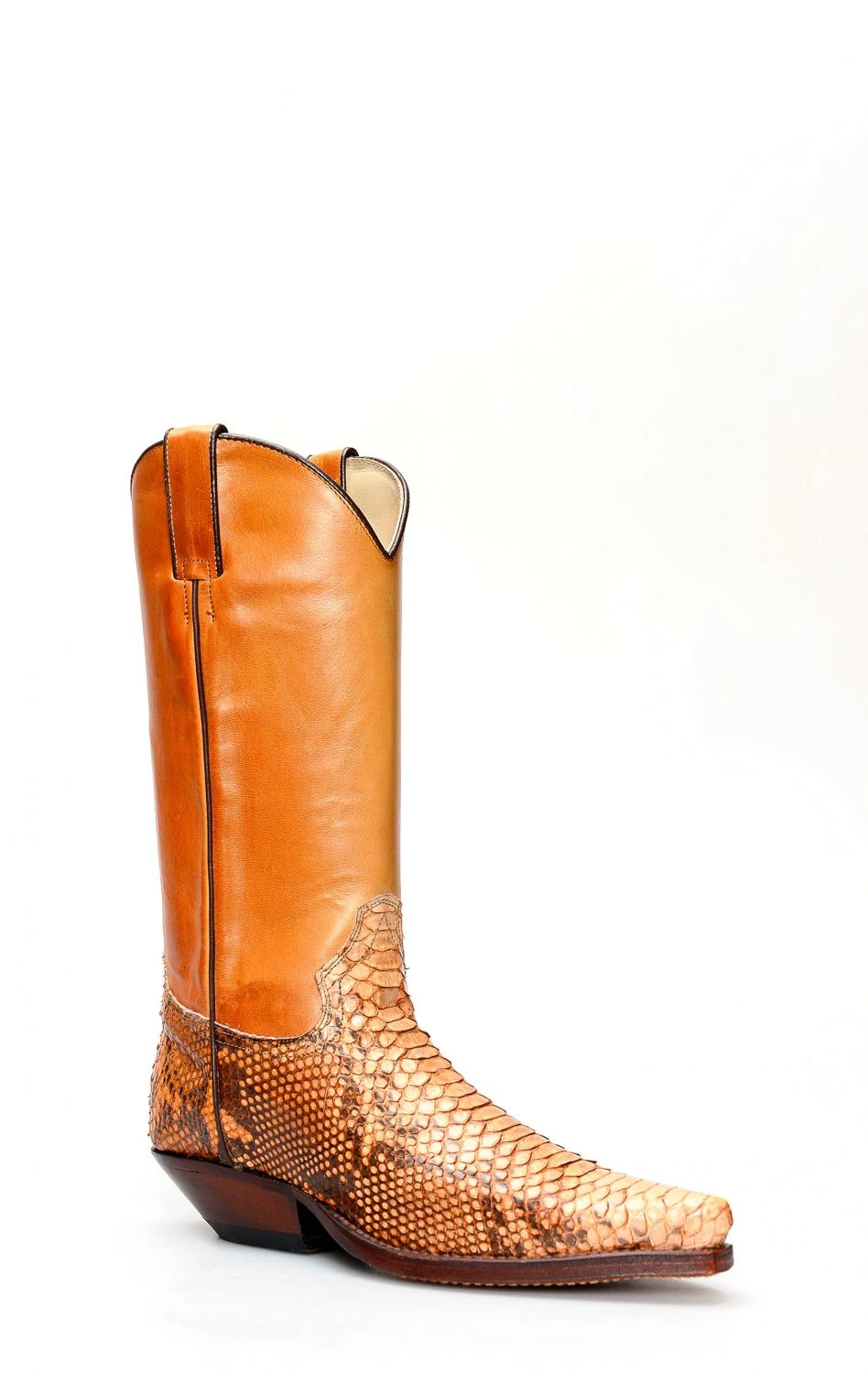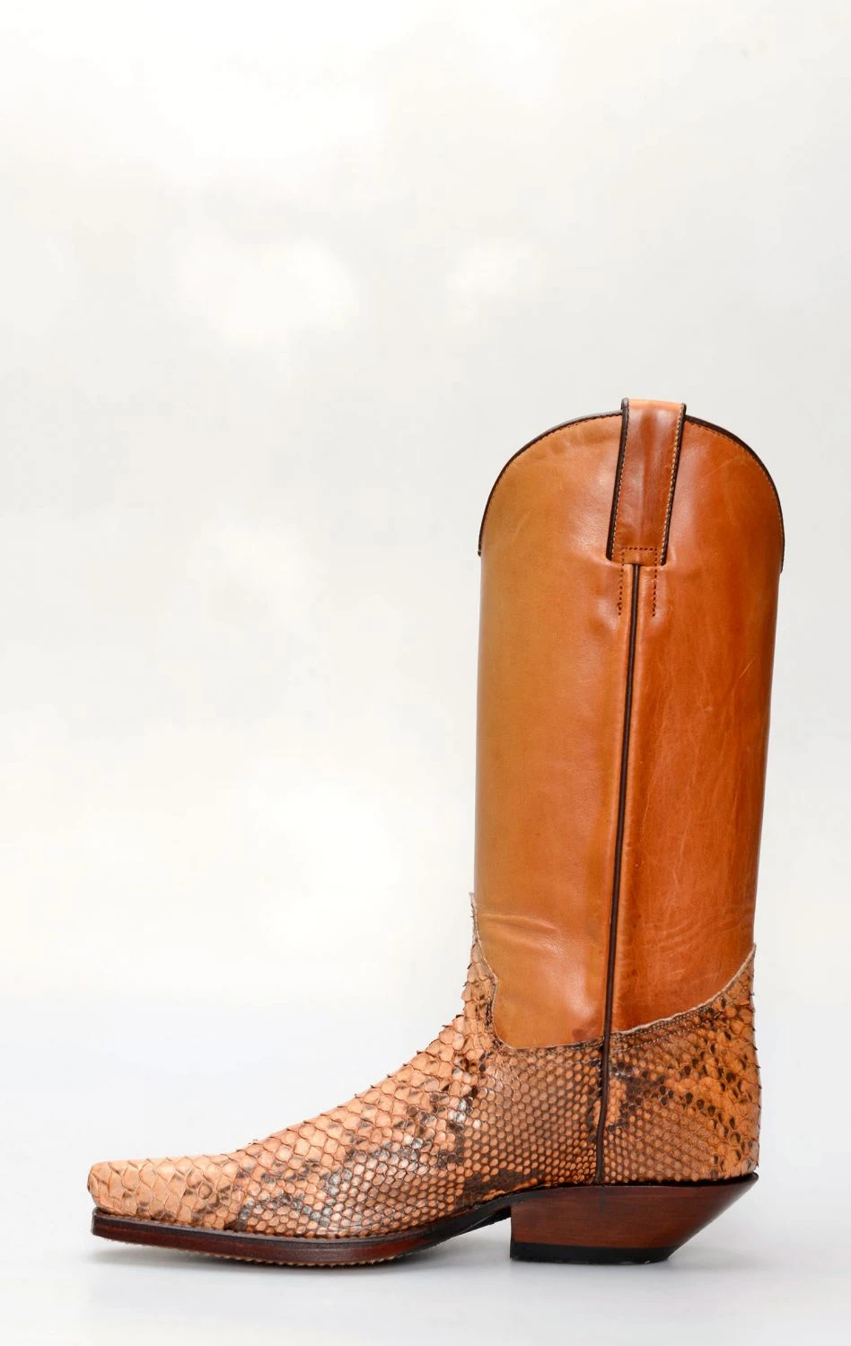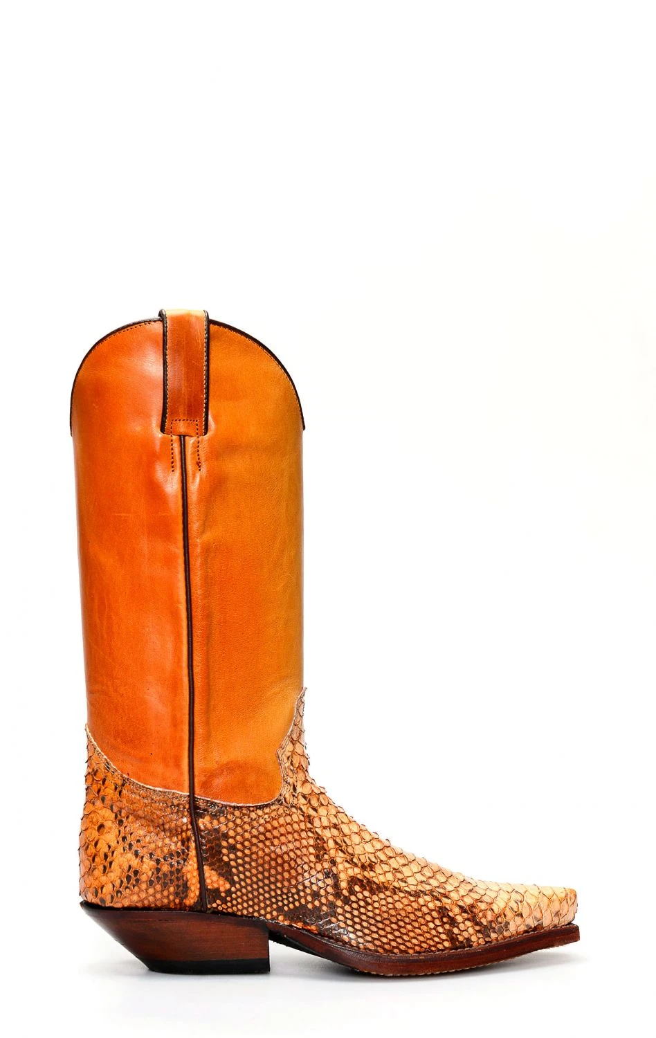 Stivali Tony Mora in pelle di pitone marrone chiaro.