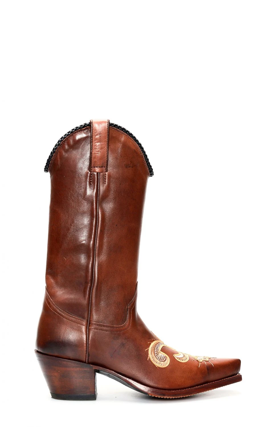 Stivali Tony Mora in color cuoio marrone con particolare ricamo a contrasto