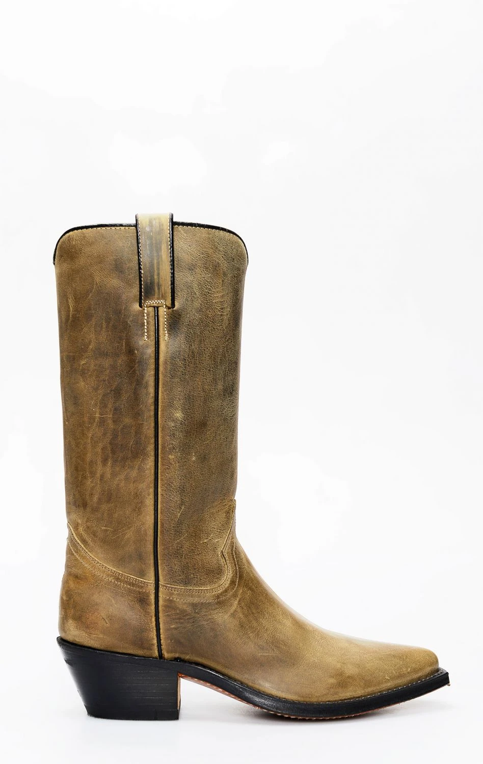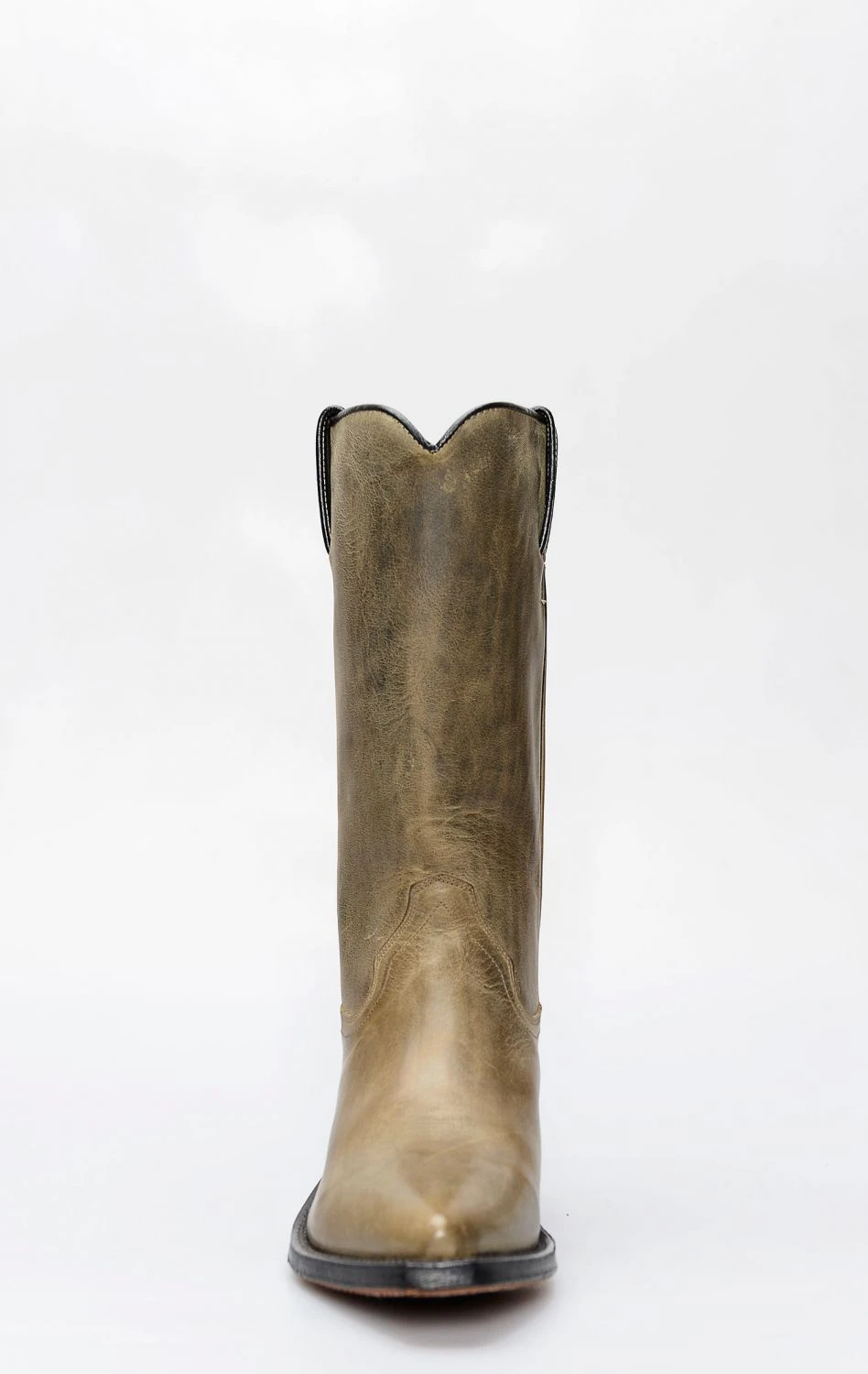 Stivale confezionato in pelle genuina di vitello di colore verde invecchiato, completamente rifinito all’interno in fior di pelle e con suola in cuoio.