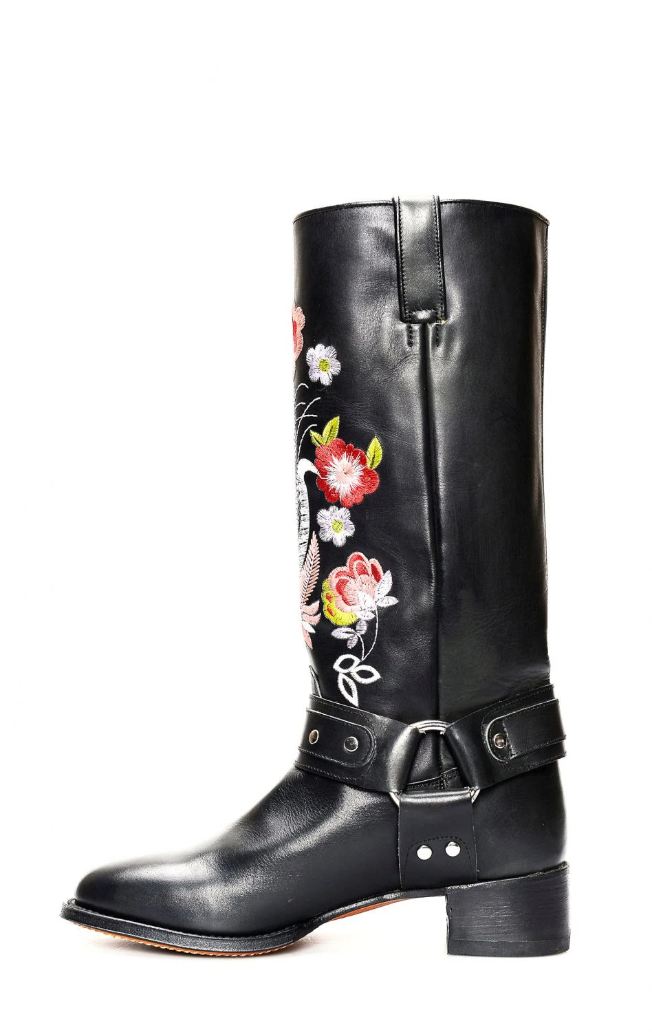 Stivale confezionato in pelle genuina di vitello di colore nero, completamente rifinito all’interno in fior di pelle e con suola in cuoio.